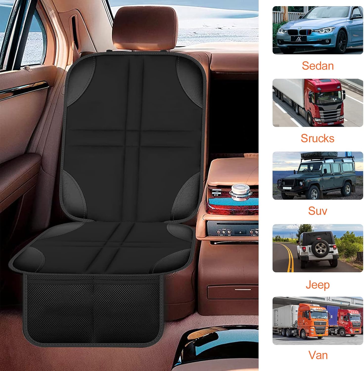 • Дизайн за съхранение: калъфът за столче за кола е снабден с мрежест джоб, който може да се използва за съхранение на ежедневни нужди, а също така осигурява място за съхранение на играчки и напитки за деца, поддържайки колата подредена и чиста, много практично.