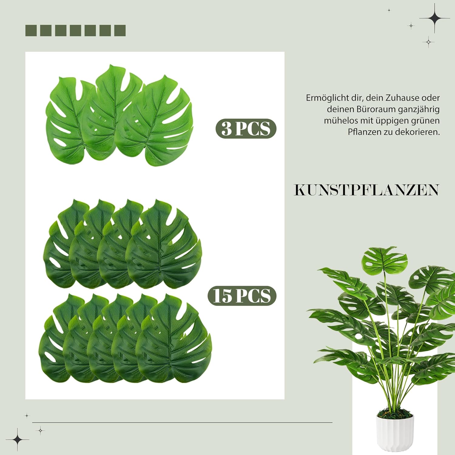 • ПАКЕТЪТ ВКЛЮЧВА: Включва саксия с коренище на растението, 18 броя листа от монстера с различни размери, мъх. Това е „Направи си сам“ стил, според вашите нужди, за да сглобите нашето растение изкуствено голямо.