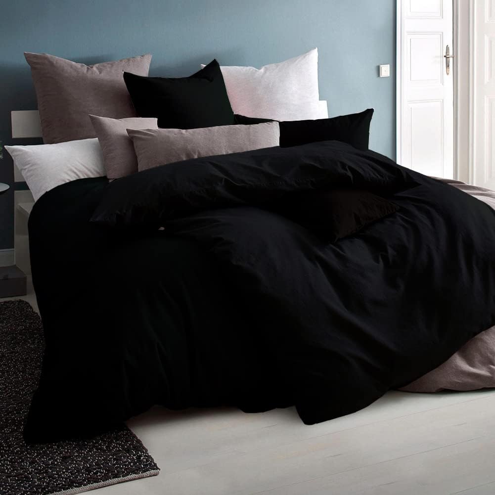 Комплект от 2 калъфки за възглавници, 50 x 50 см, черни, 100% микрофибър, не се гладят и не се намачкват, с цип
