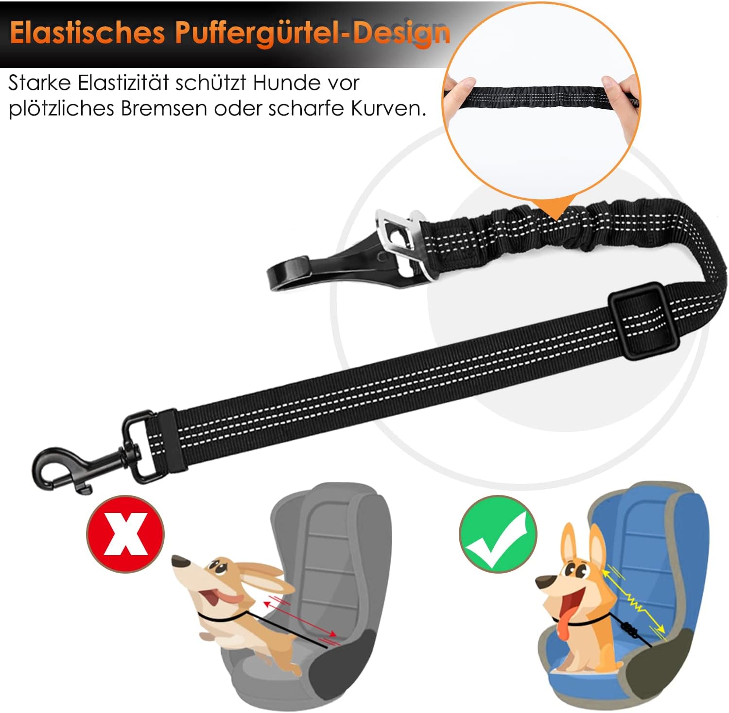 {'1. Choose the appropriate size for the dog safety belt, depending on the size of your dog. 2. Attach the dog safety belt to the LATCH system, seat belt or boot of your vehicle with the included hardware. 3. Adjust the length of the dog protection belt to ensure a comfortable fit for your dog. 4. Attach the dog protection belt to your dog's harness or collar with the enclosed clamps. 5. Make sure the dog safety belt is securely attached before driving