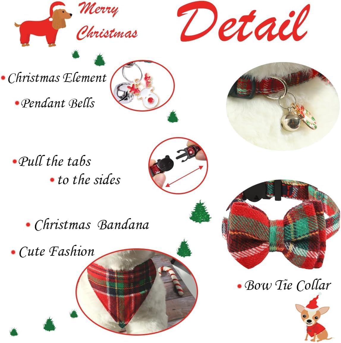 Комплект от 2 коледни нашийника, коледен нашийник за котка, малки нашийници за кучета, регулируем, регулируем нашийник за котка с панделка, коледен нашийник за кучета, за коледен костюм на кученца, малки котки