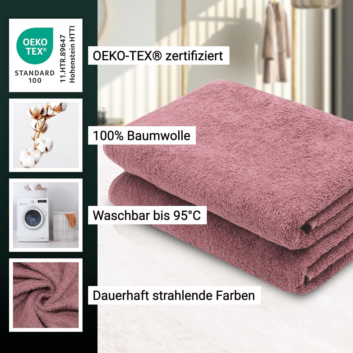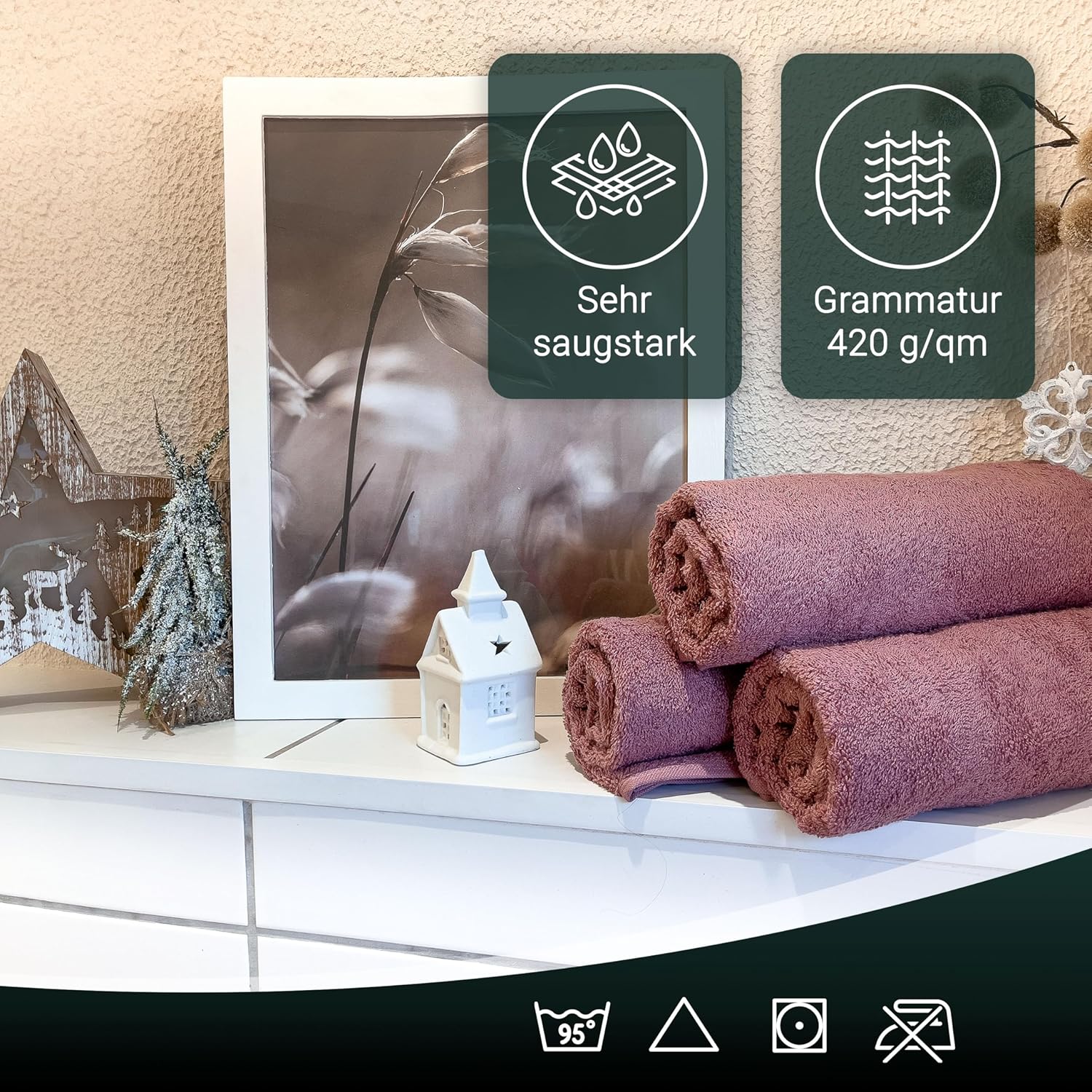 Индантреновият цвят гарантира на кърпите за гости най-високи стойности за устойчивост на цветовете и най-добра стабилност на цветовете, те могат да се перат до 95°C и дори са устойчиви на варене и хлор.