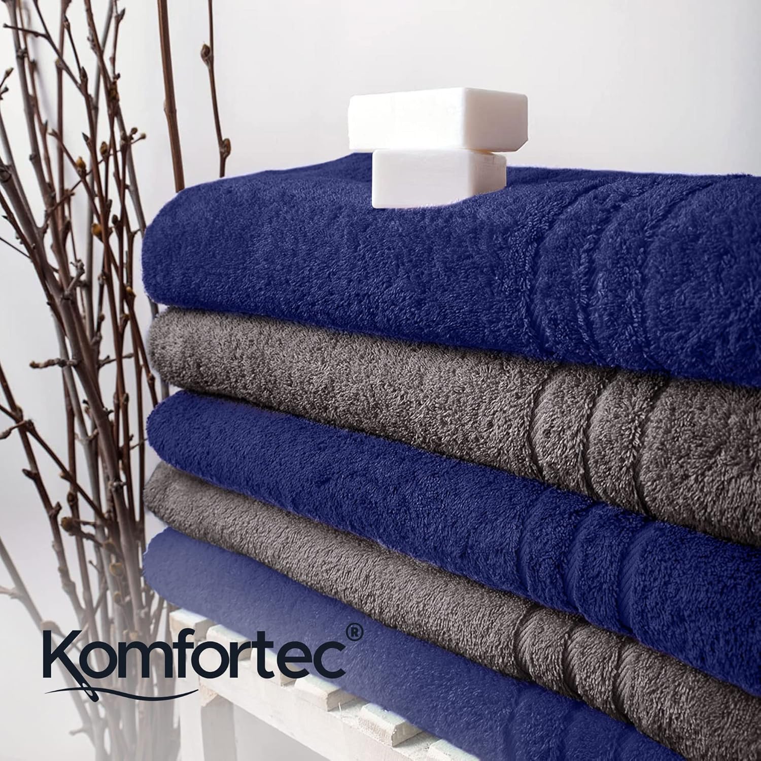 Комплект от 2 кърпи за сауна Komfortec, 80 x 200 см, 100% памук, XXL кърпи за сауна, кърпа за сауна, мека, голяма, хавлиена кърпа, бързосъхнеща, антрацит/тъмносиня