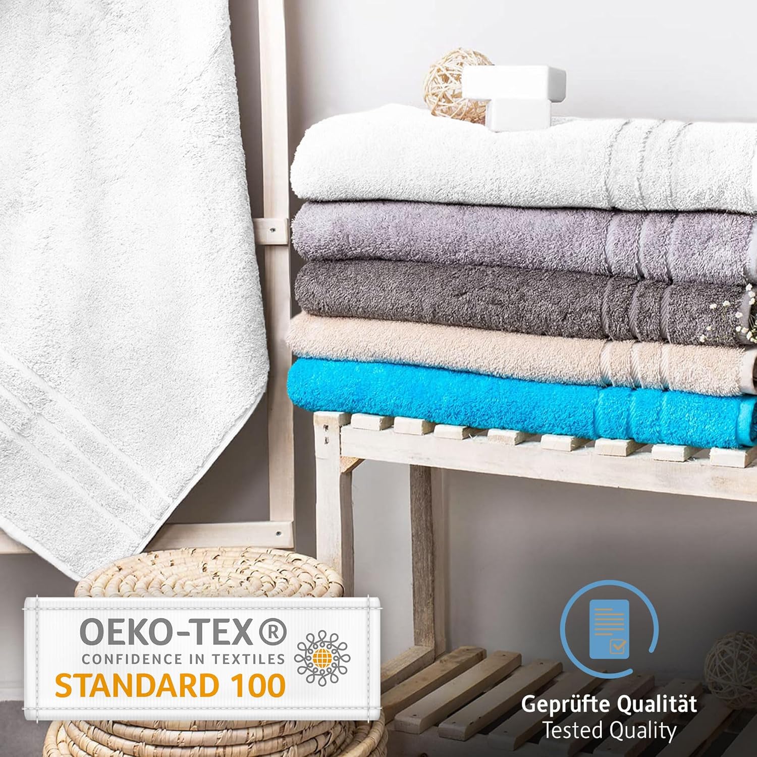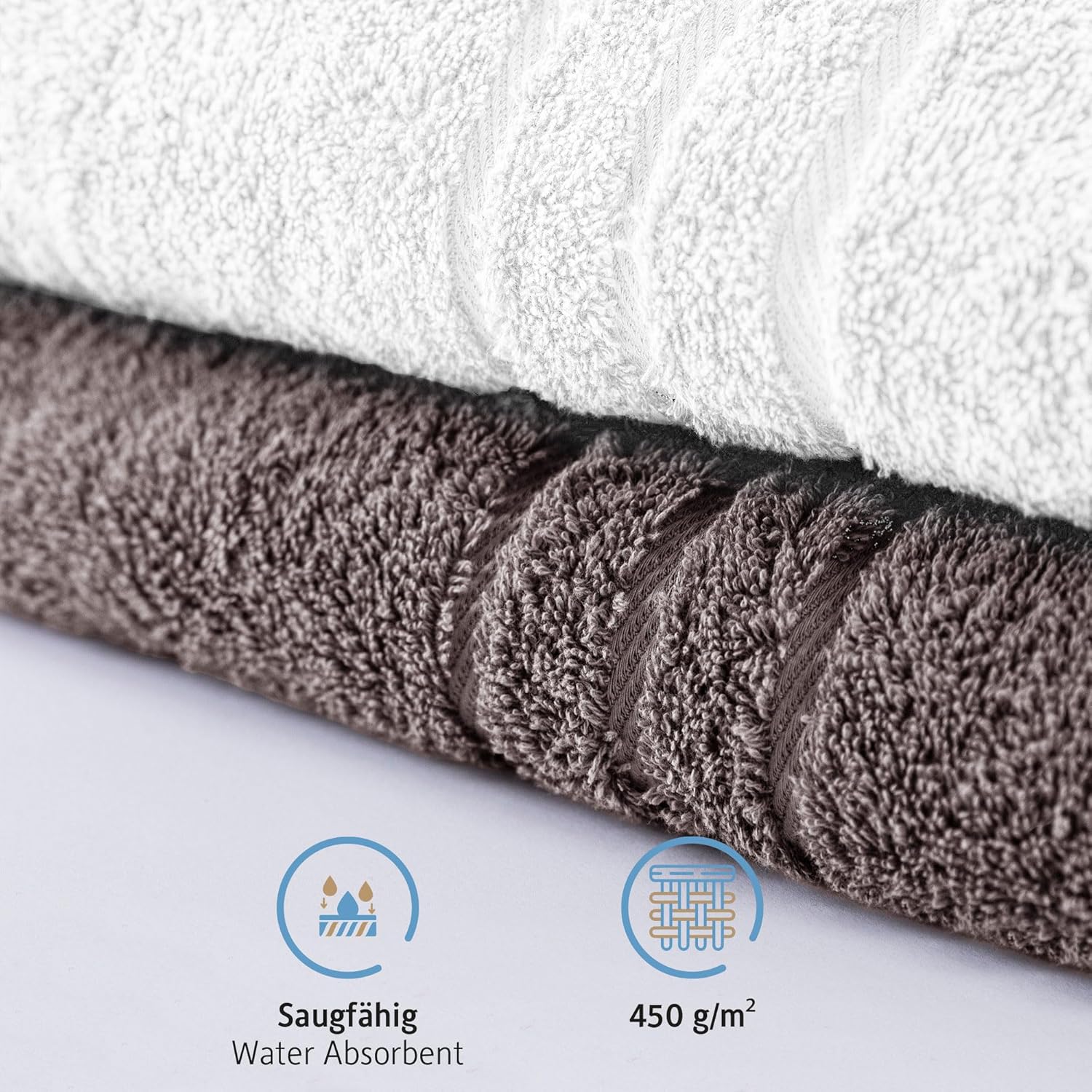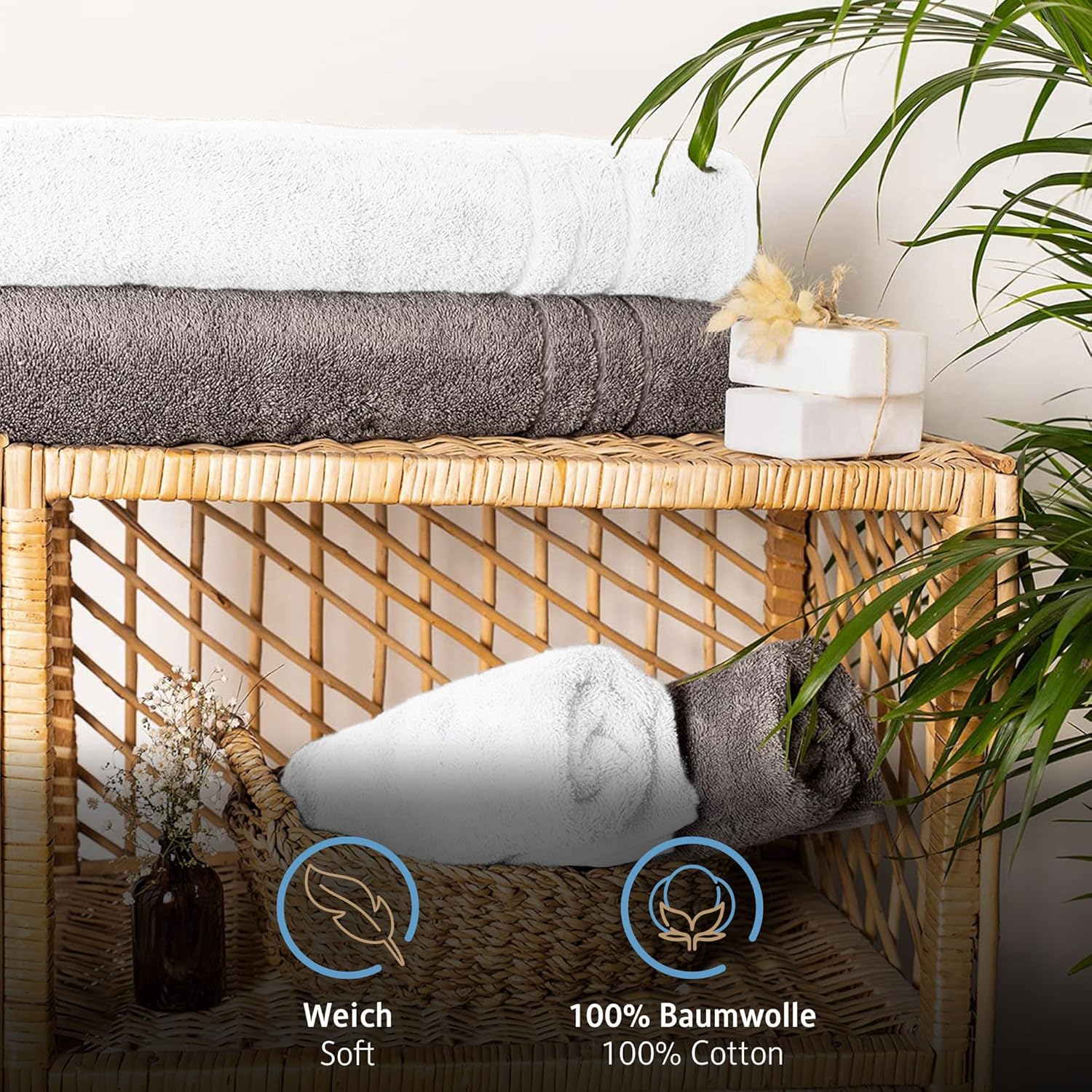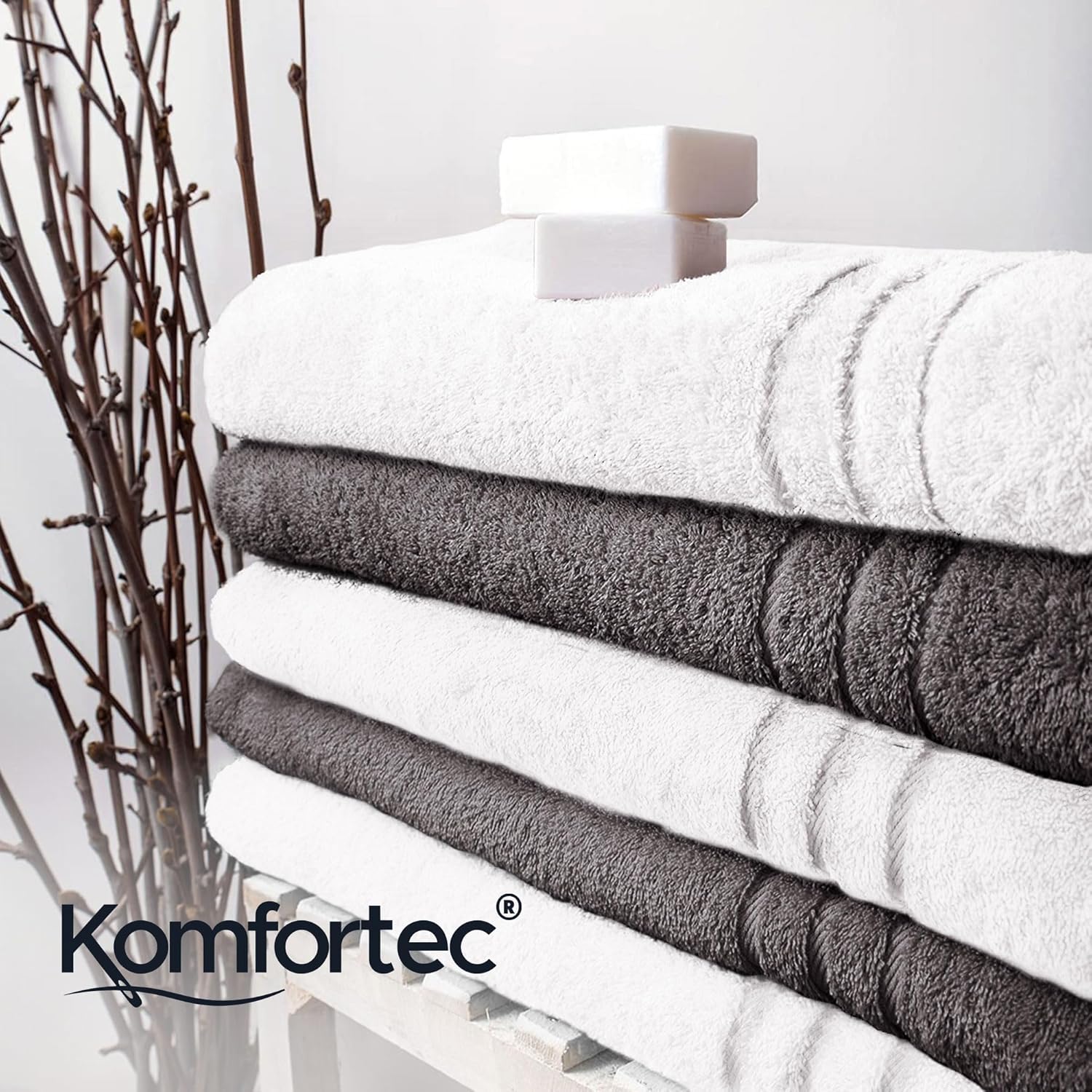 Комплект от 2 кърпи за сауна Komfortec, 80 x 200 см, 100% памук, XXL кърпи за сауна, меки, големи, хавлиени, бързосъхнещи, антрацитно сиво/бяло.
