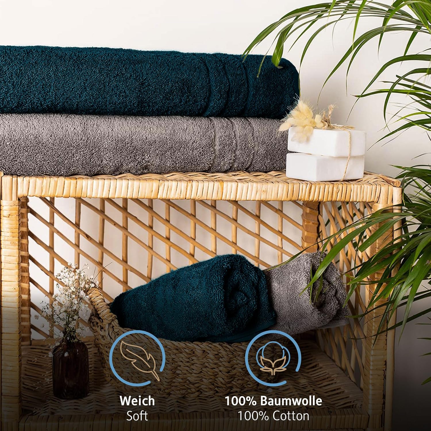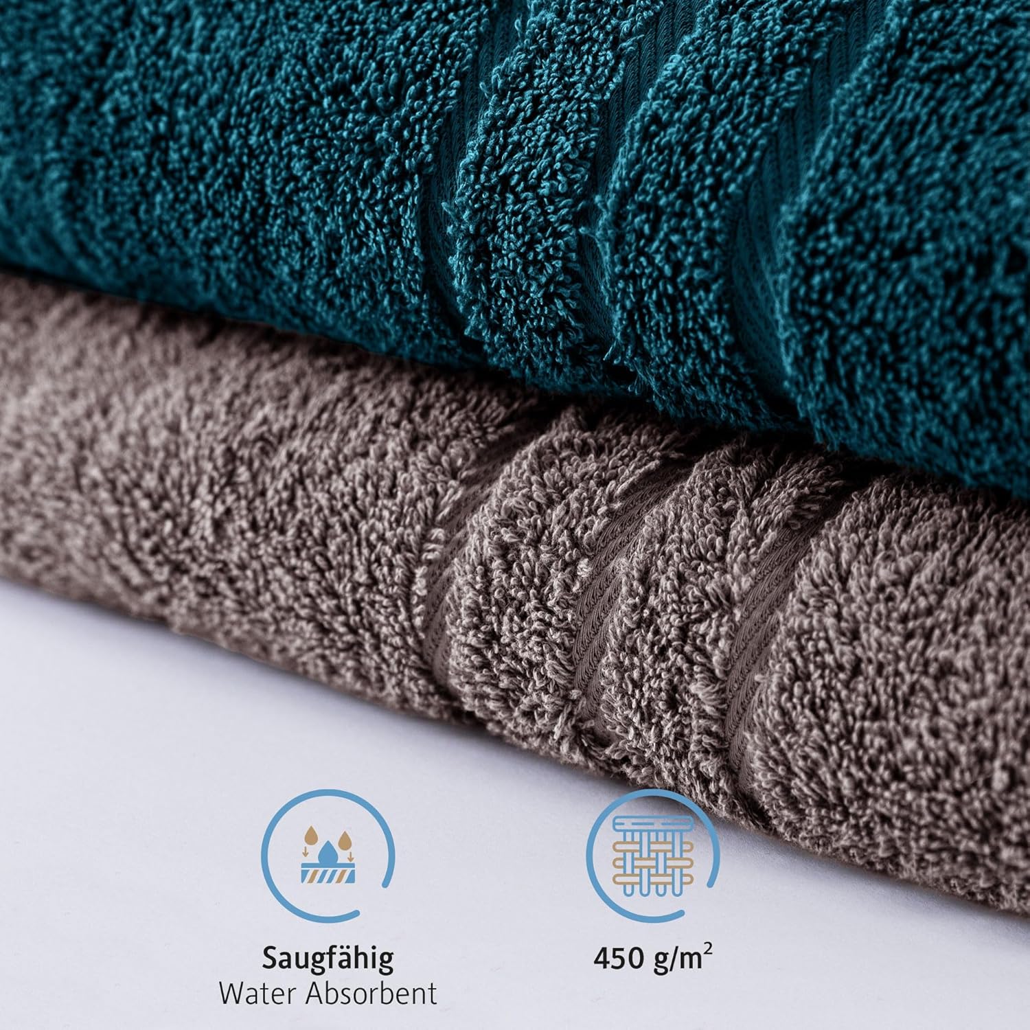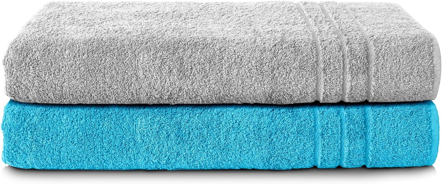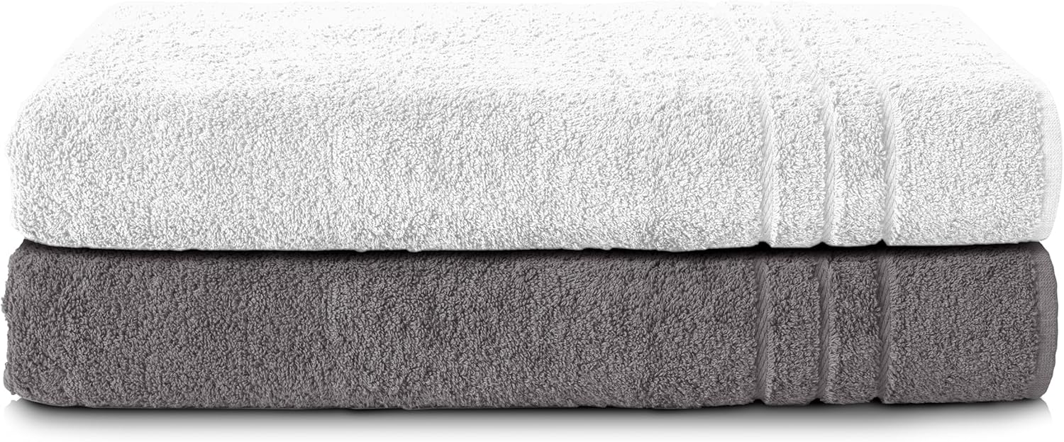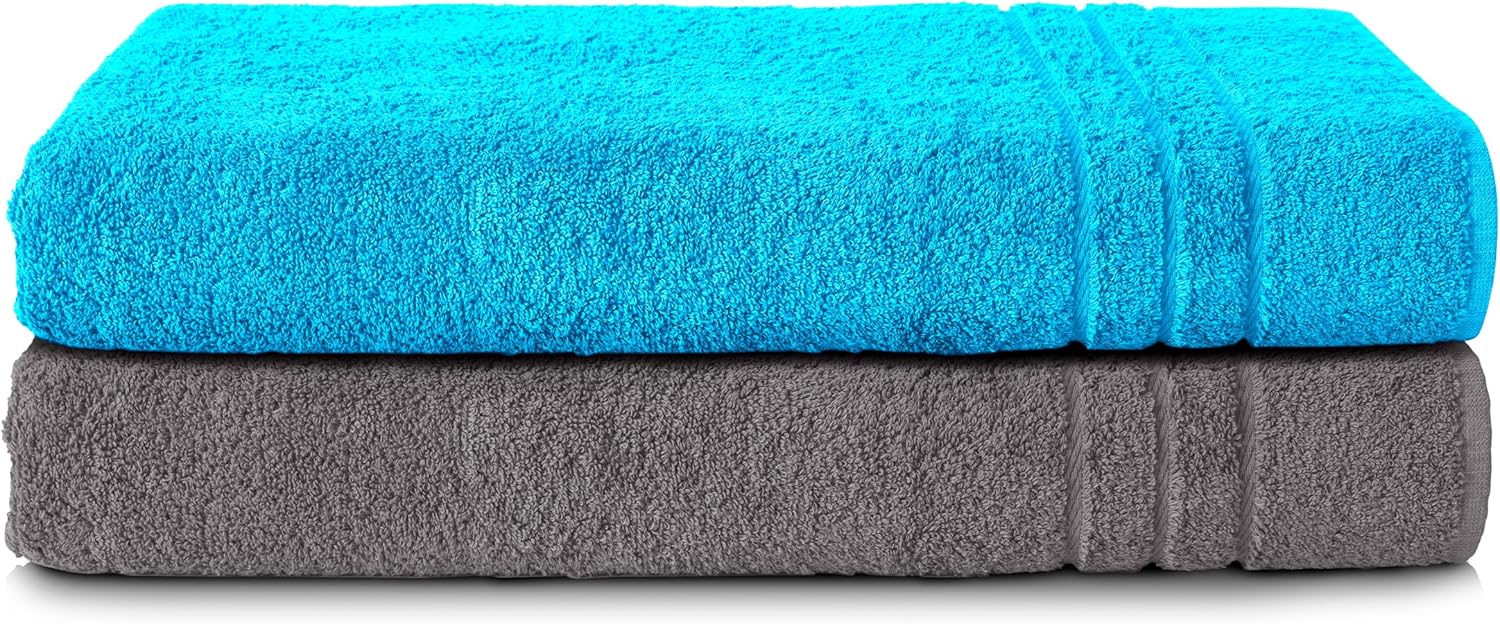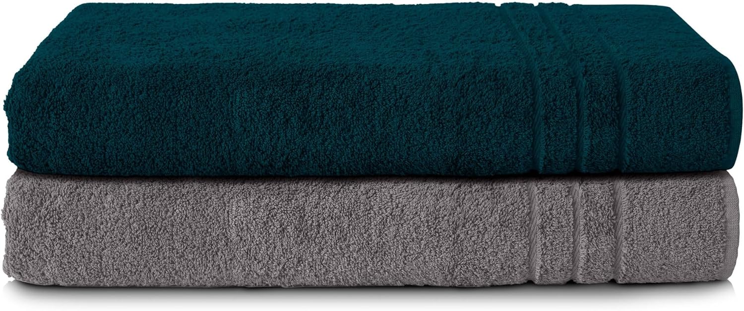 Комплект от 2 кърпи за сауна Komfortec, 80 x 200 см, 100% памук, XXL кърпи за сауна, меки, големи, хавлиени, бързосъхнещи, антрацитно сиво/петролно сиво