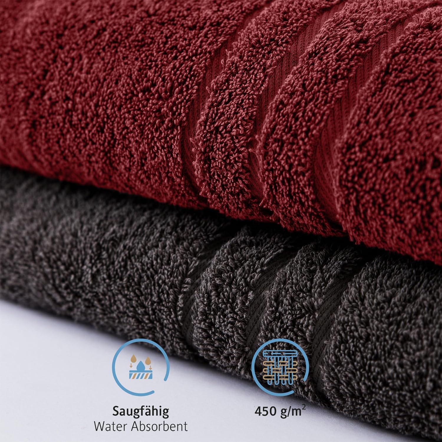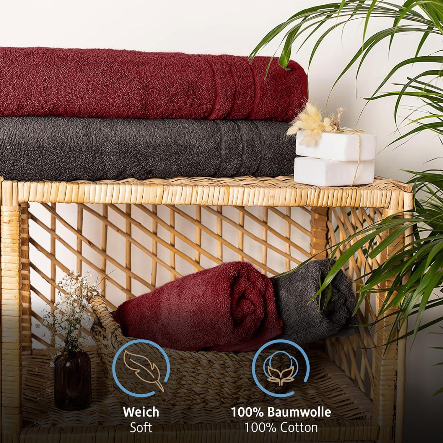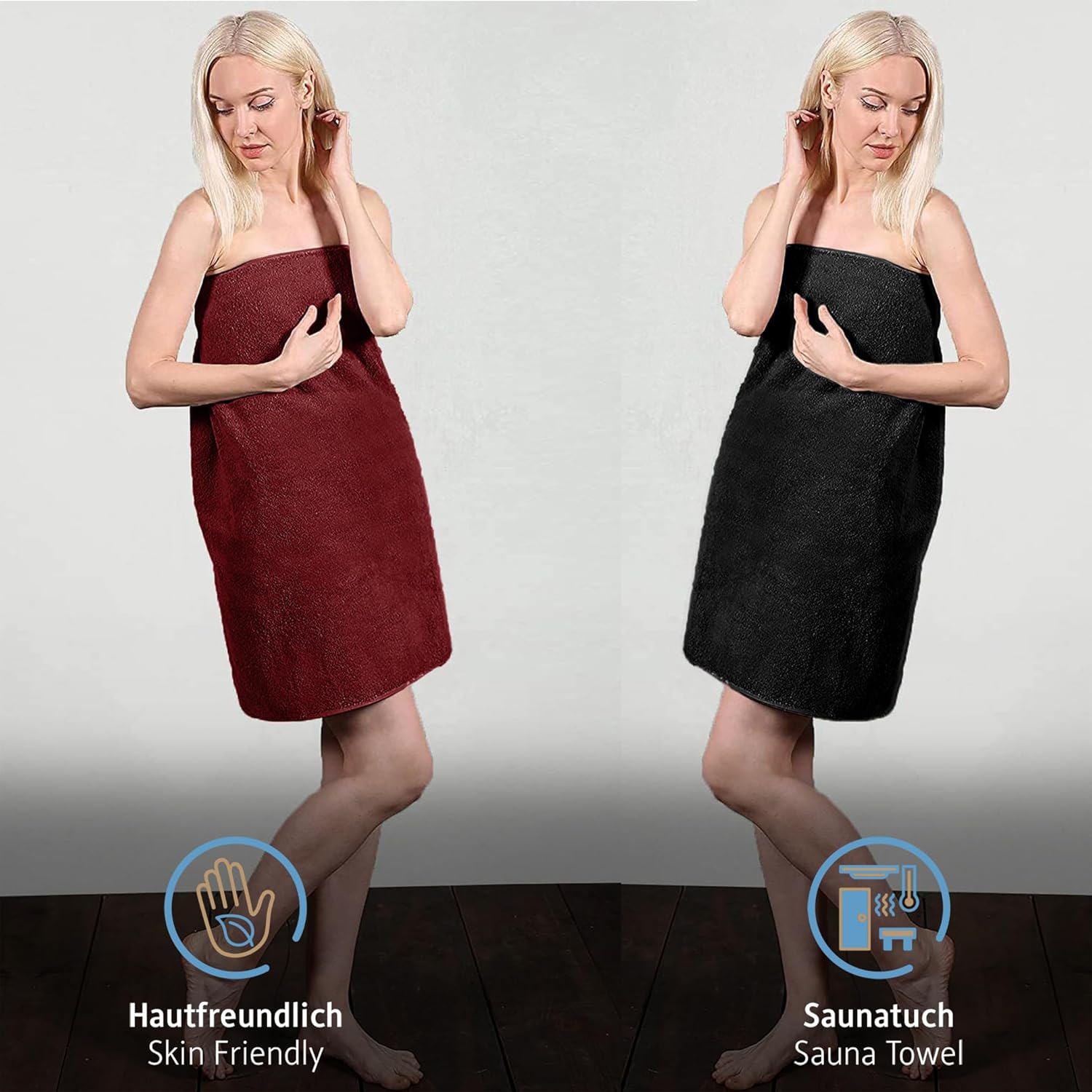 Комплект от 2 кърпи за сауна Komfortec, 80 x 200 см, 100% памук, XXL кърпи за сауна, меки, големи, хавлиени, бързосъхнещи, черни/червени Aurora