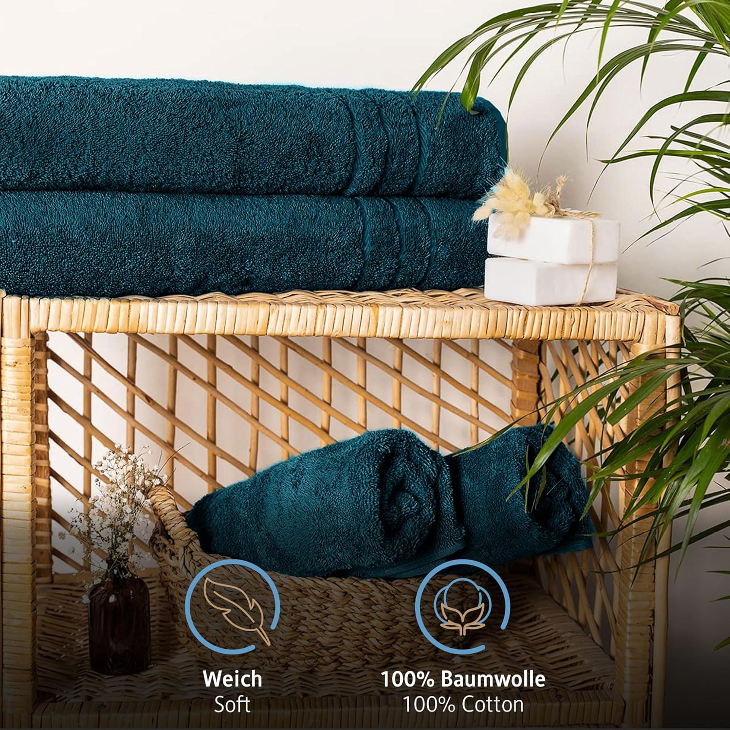 Комплект от 2 кърпи за сауна Komfortec, 80 x 200 см, 100% памук, XXL кърпи за сауна, меки, големи, хавлиени, бързосъхнещи, петролни