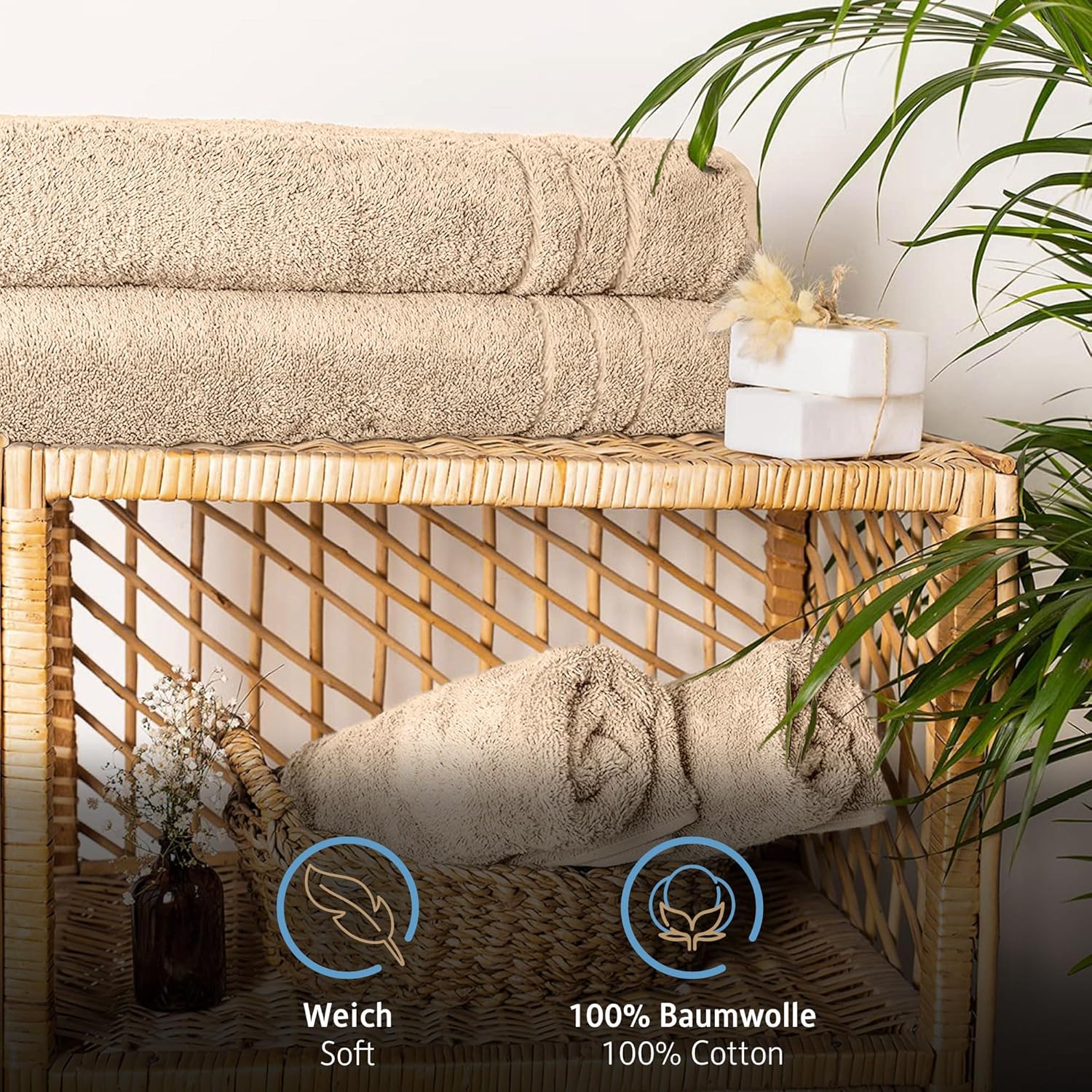 Комплект от 2 кърпи за сауна Komfortec, 80 x 200 см, 100% памук, XXL кърпи за сауна, меки, големи, хавлиени, бързосъхнещи, пясъчно/бежови