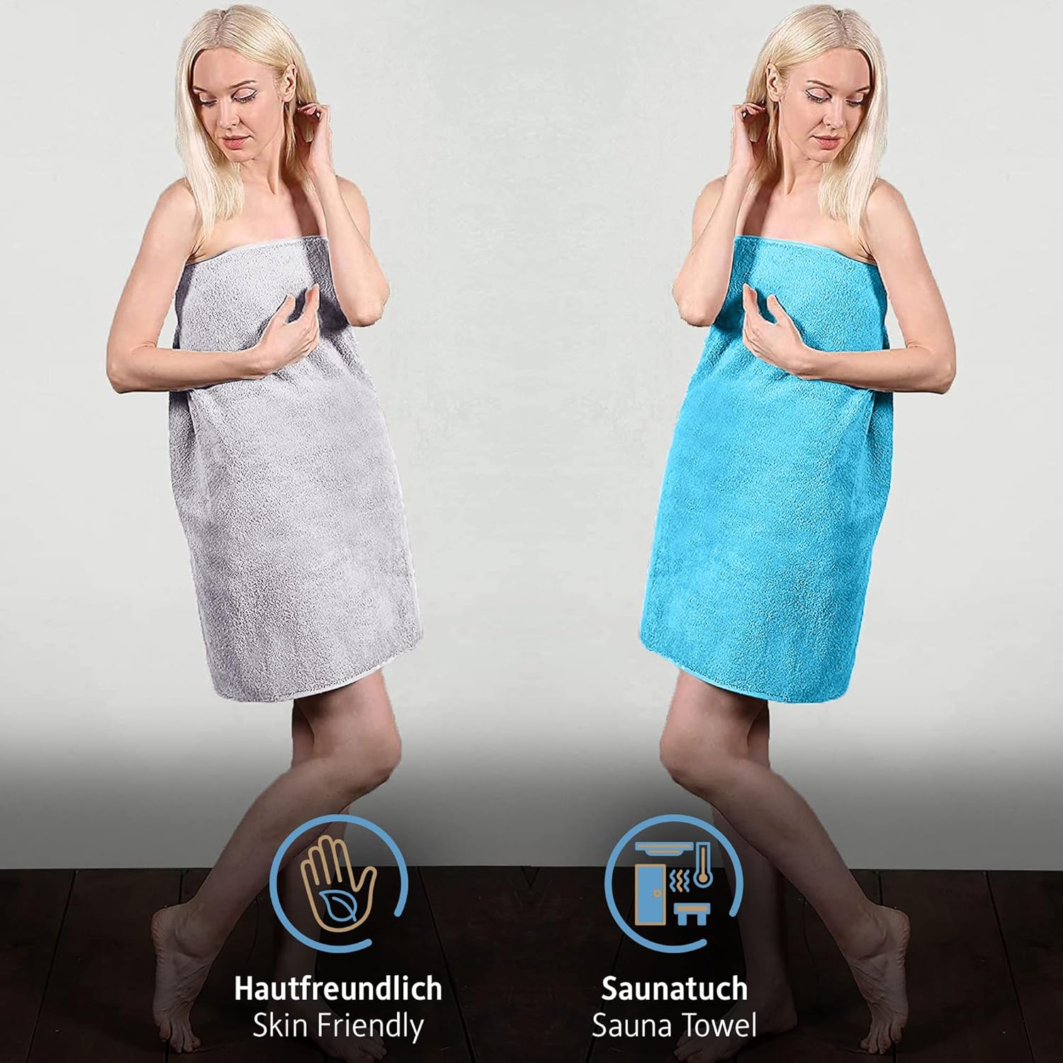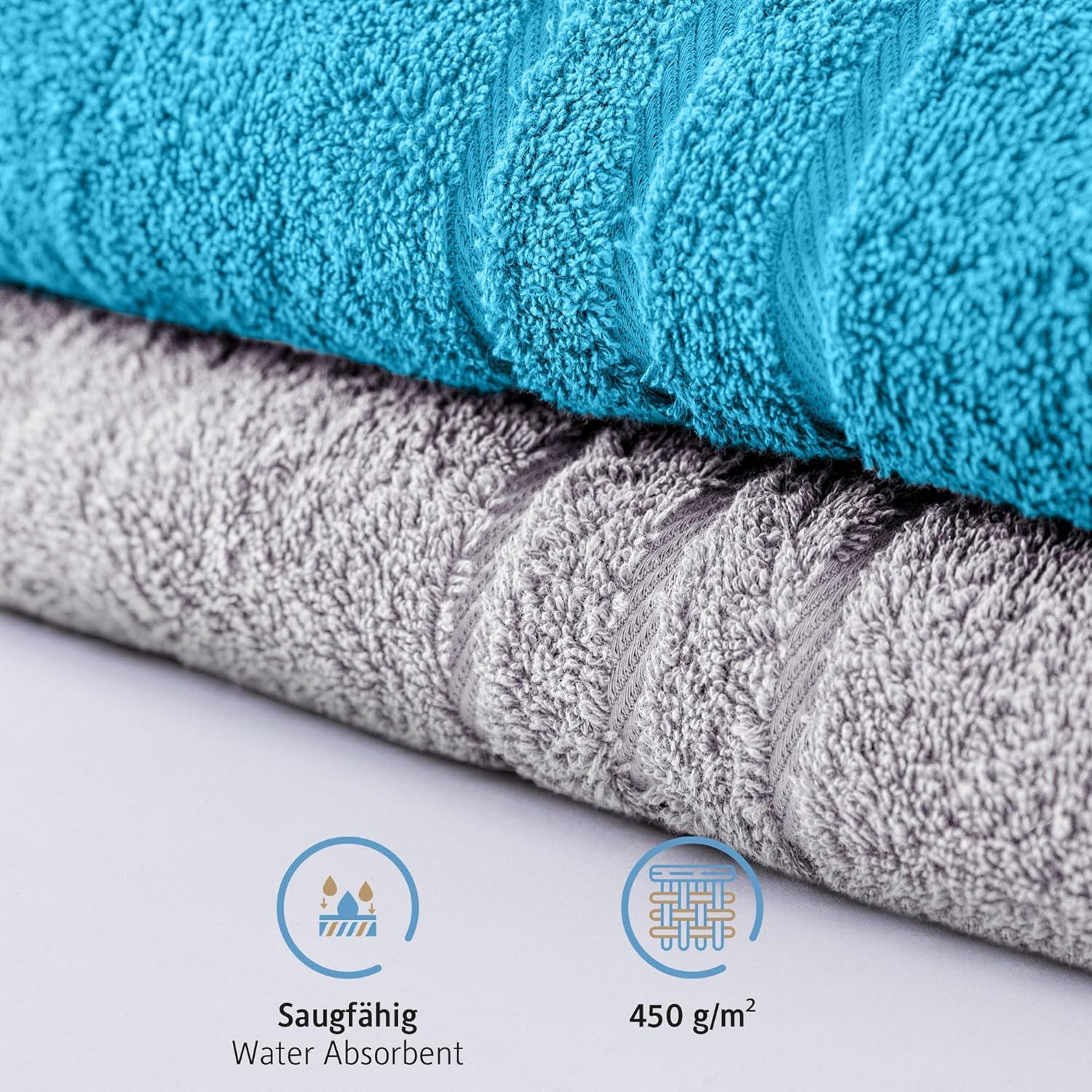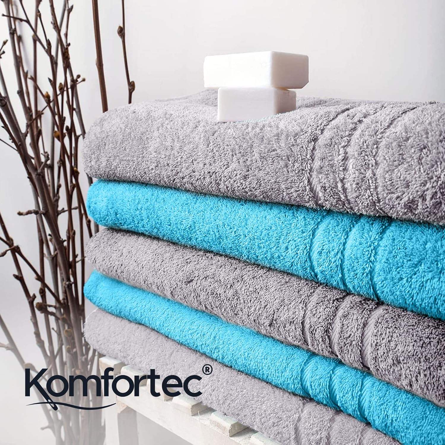 Комплект от 2 кърпи за сауна Komfortec, 80 x 200 см, 100% памук, XXL кърпи за сауна, меки, големи, хавлиени, бързосъхнещи, сребристо-сиви/тюркоазени