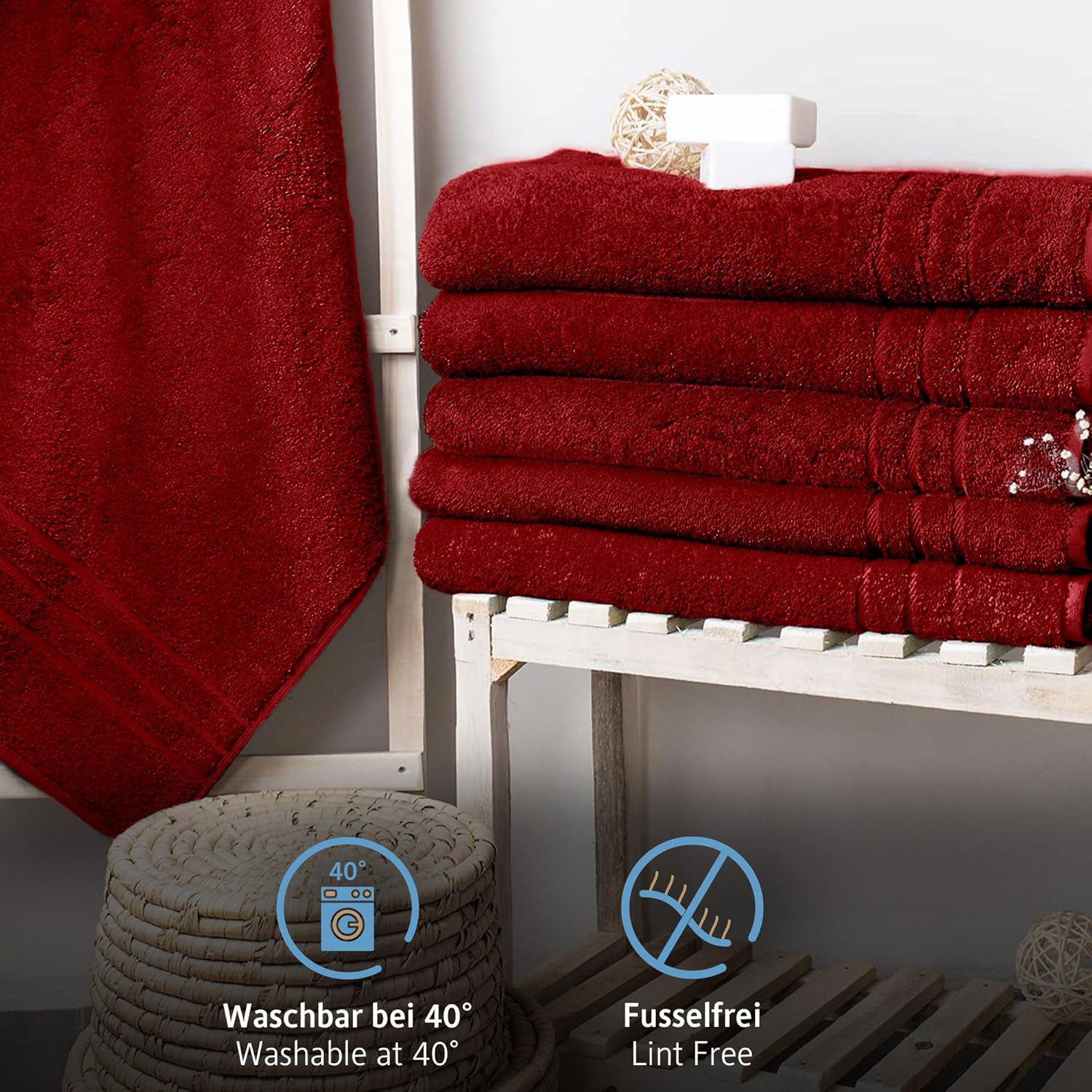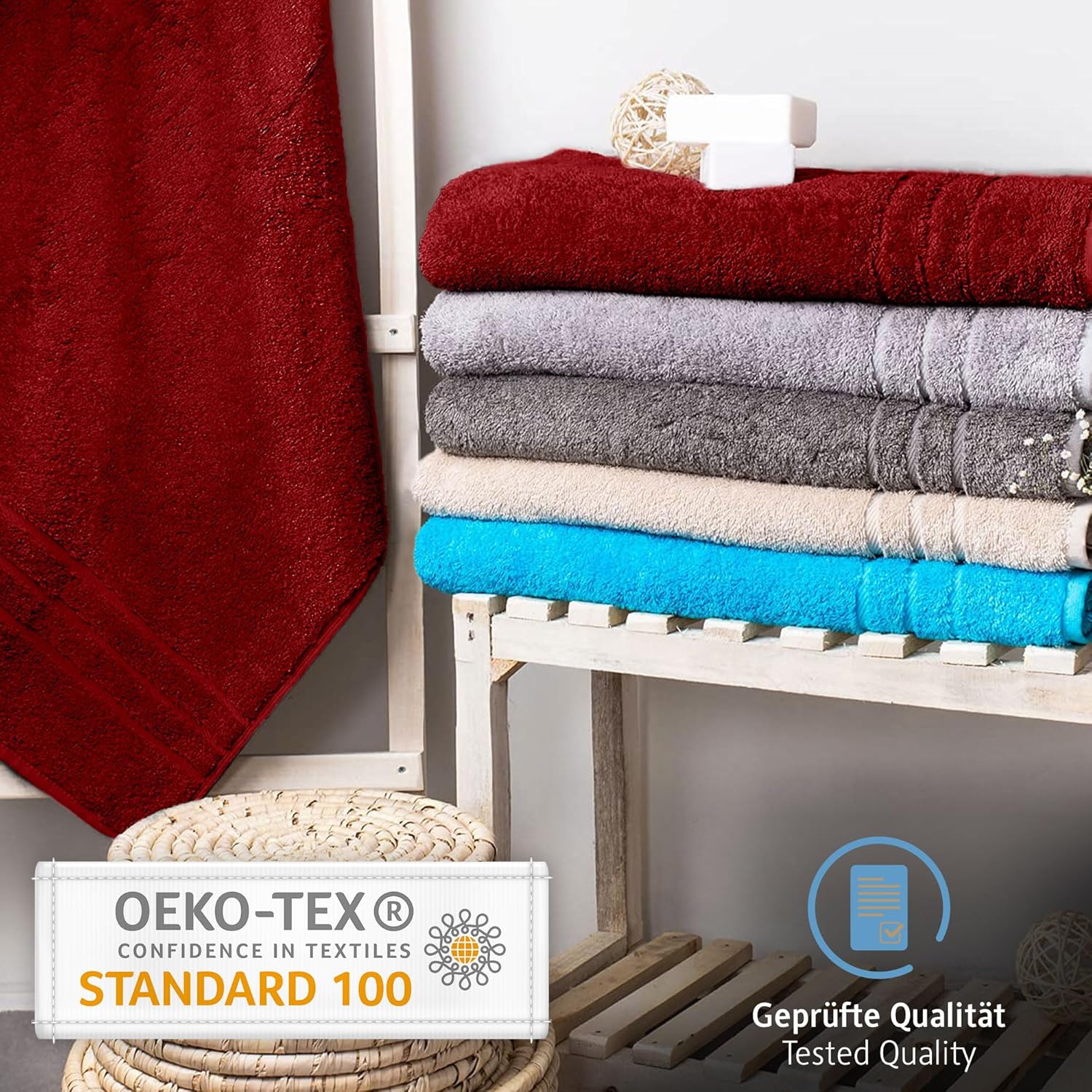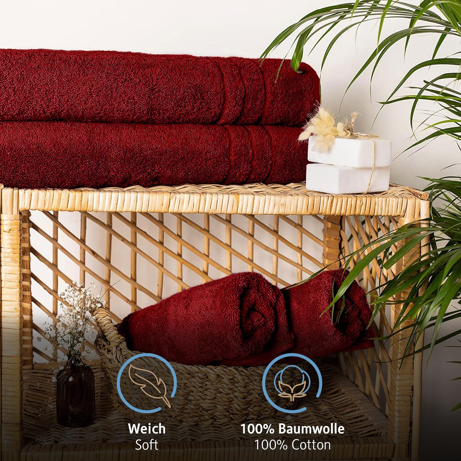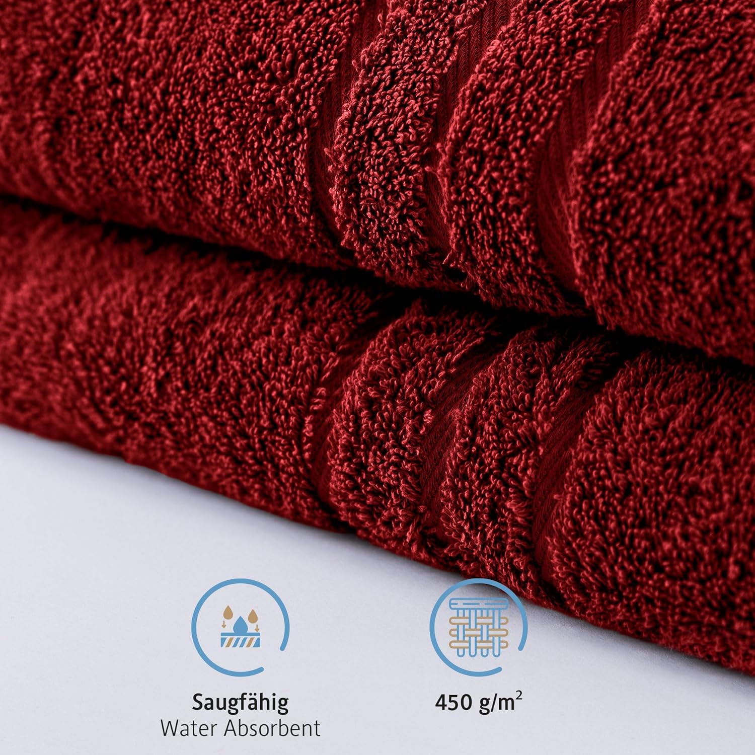 Комплект от 2 кърпи за сауна Komfortec, 80 x 200 см, 100% памук, XXL кърпи за сауна, меки, големи, хавлиени, бързосъхнещи, цвят Aurora Red