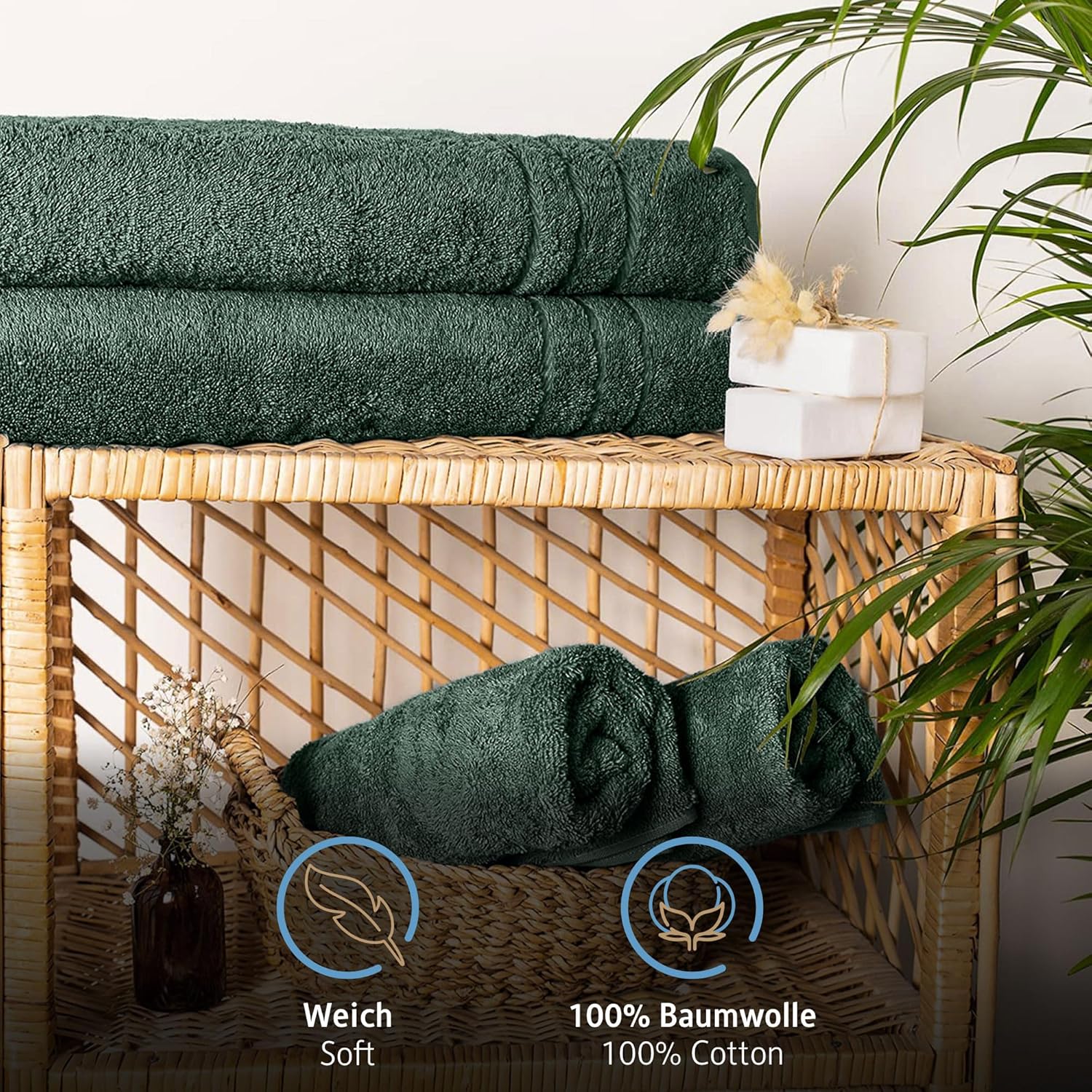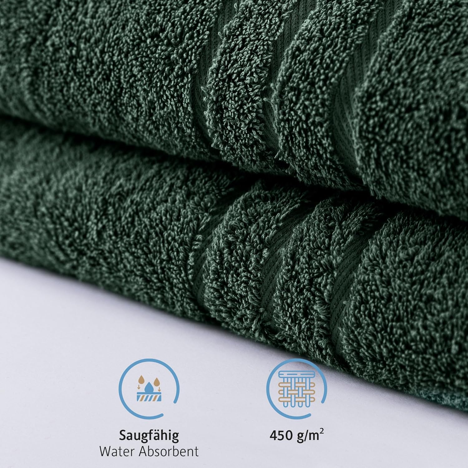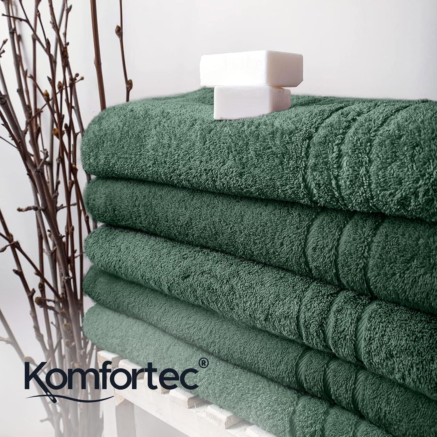 Комплект от 2 кърпи за сауна Komfortec, 80 x 200 см, 100% памук, XXL кърпи за сауна, меки, големи, хавлиени, бързосъхнещи, тъмнозелени