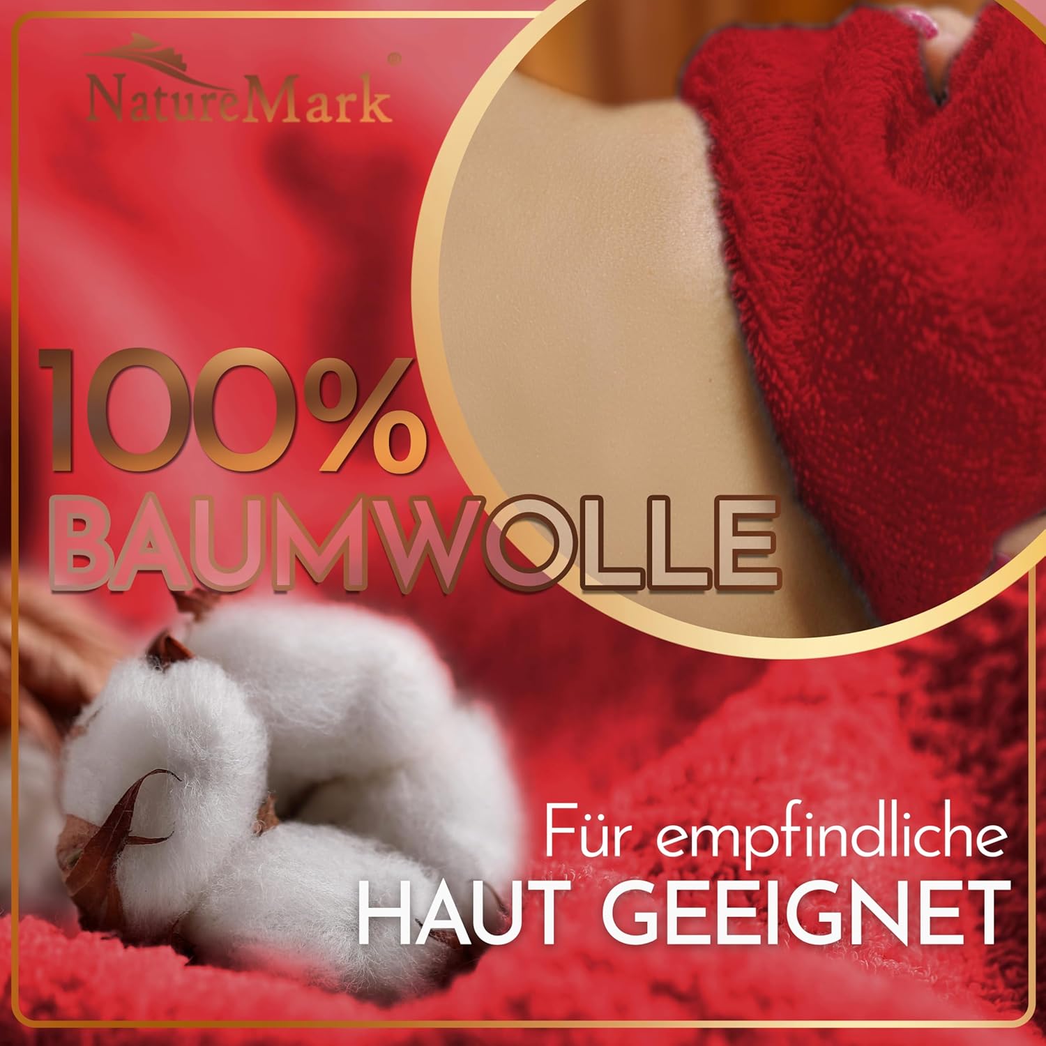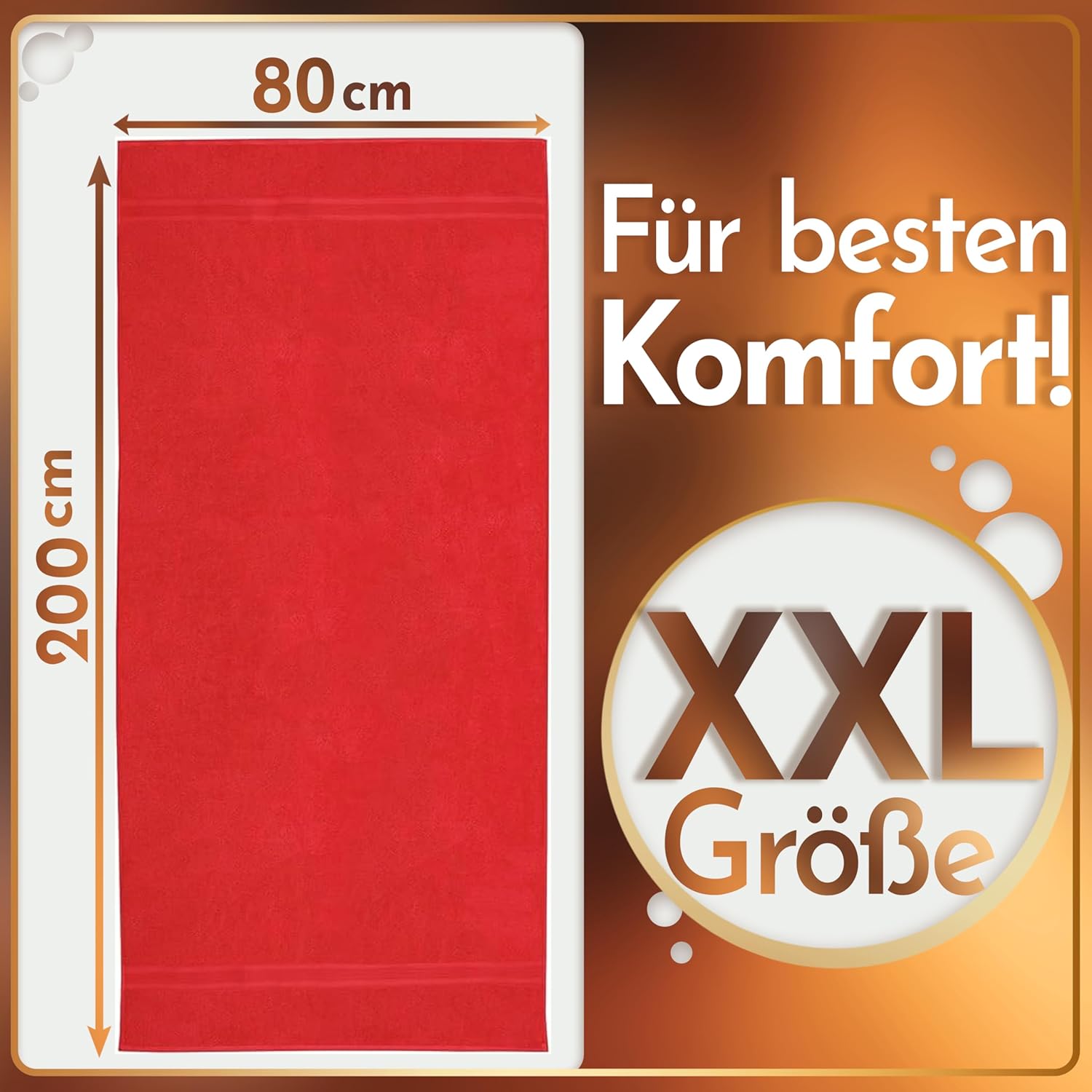 Комплект от 2 кърпи за сауна NatureMark, 80 x 200 см, луксозни памучни кърпи, изключително мека кърпа за уелнес, цвят: червен
