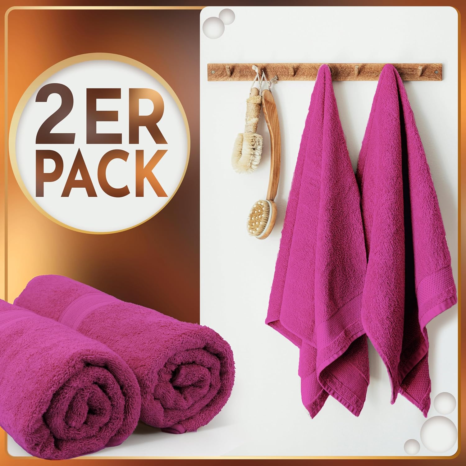 Комплект от 2 кърпи за сауна NatureMark, 80 x 200 см, луксозни памучни кърпи, изключително мека кърпа за уелнес, цвят: розов