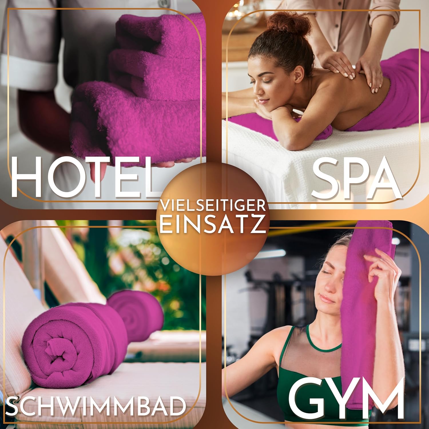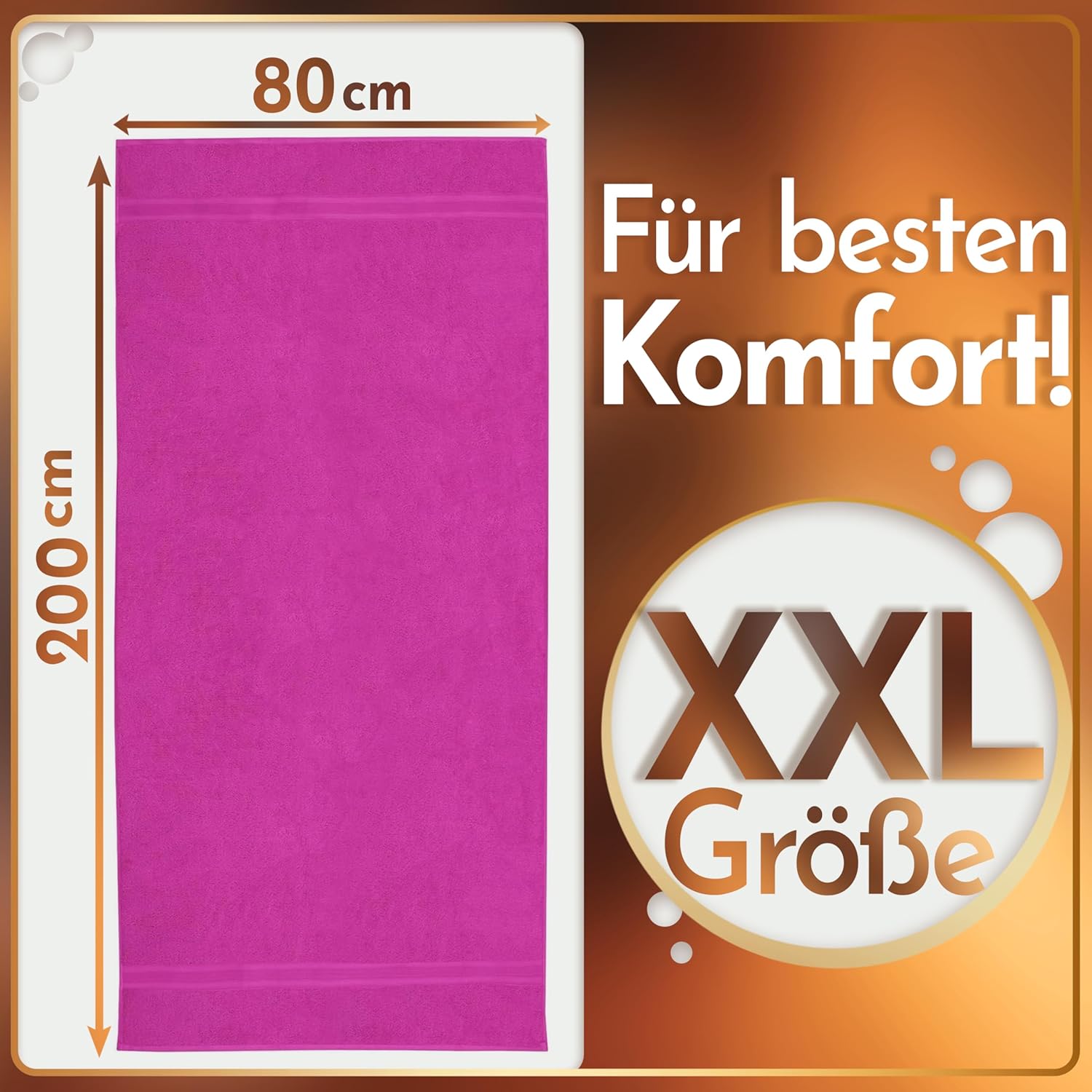 • Многофункционална употреба: тези XXL сауна кърпи са идеални не само за посещение на сауна, но и като голяма XL кърпа за баня за плажа, басейна или спа почивката. С размерите си 80 x 200 см, те са също толкова перфектни за покриване на шезлонга.