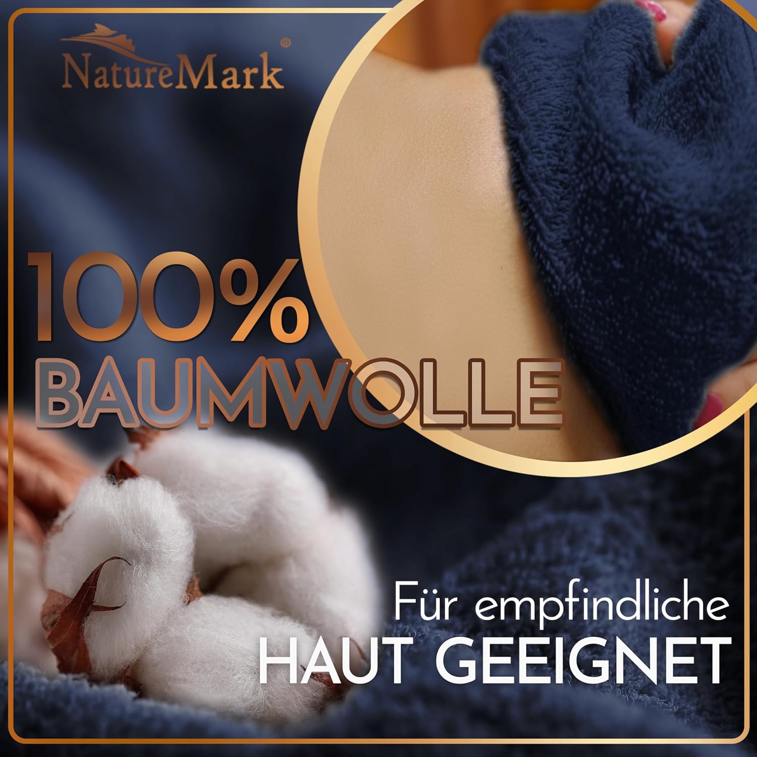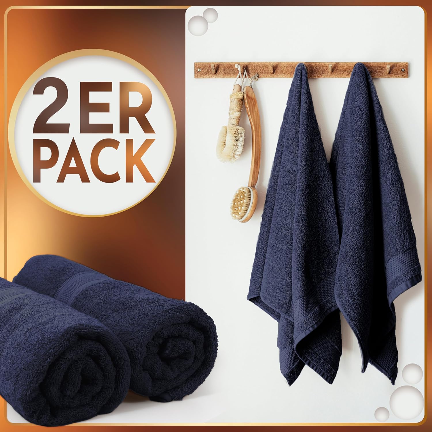 Комплект от 2 кърпи за сауна NatureMark, 80 x 200 см, луксозни памучни кърпи, изключително мека кърпа за уелнес, цвят: тъмносин