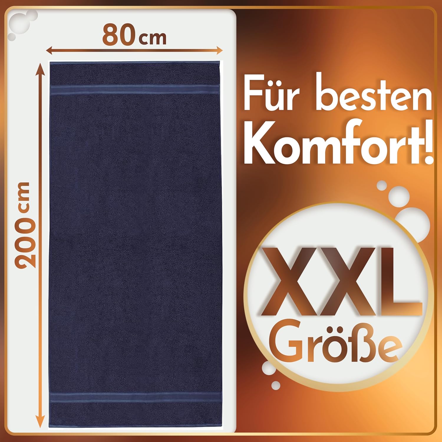 • Многофункционална употреба: тези XXL сауна кърпи са идеални не само за посещение на сауна, но и като голяма XL кърпа за баня за плажа, басейна или спа почивката. С размерите си 80 x 200 см, те са също толкова перфектни за покриване на шезлонга.