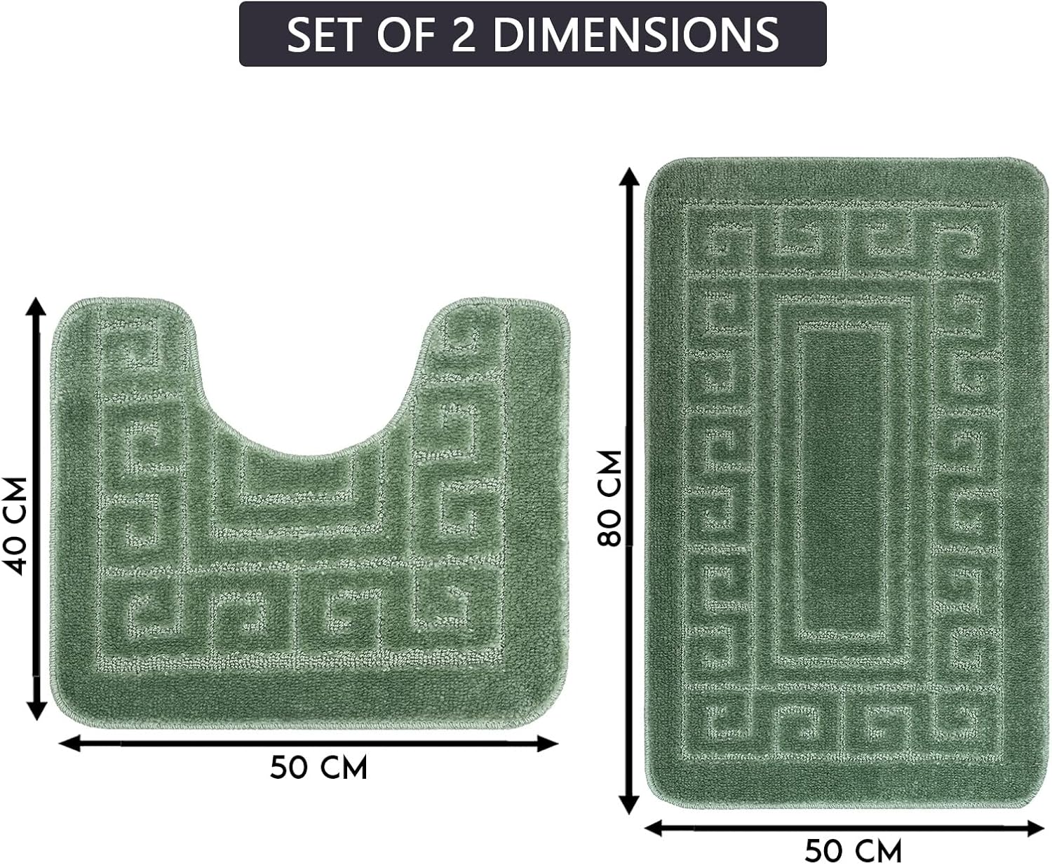 | Комплект за баня от 2 части. | Този страхотен комплект за баня е фантастичен начин да освежите декора на банята си. Комплектът включва постелка за баня и постелка за тоалетна. |