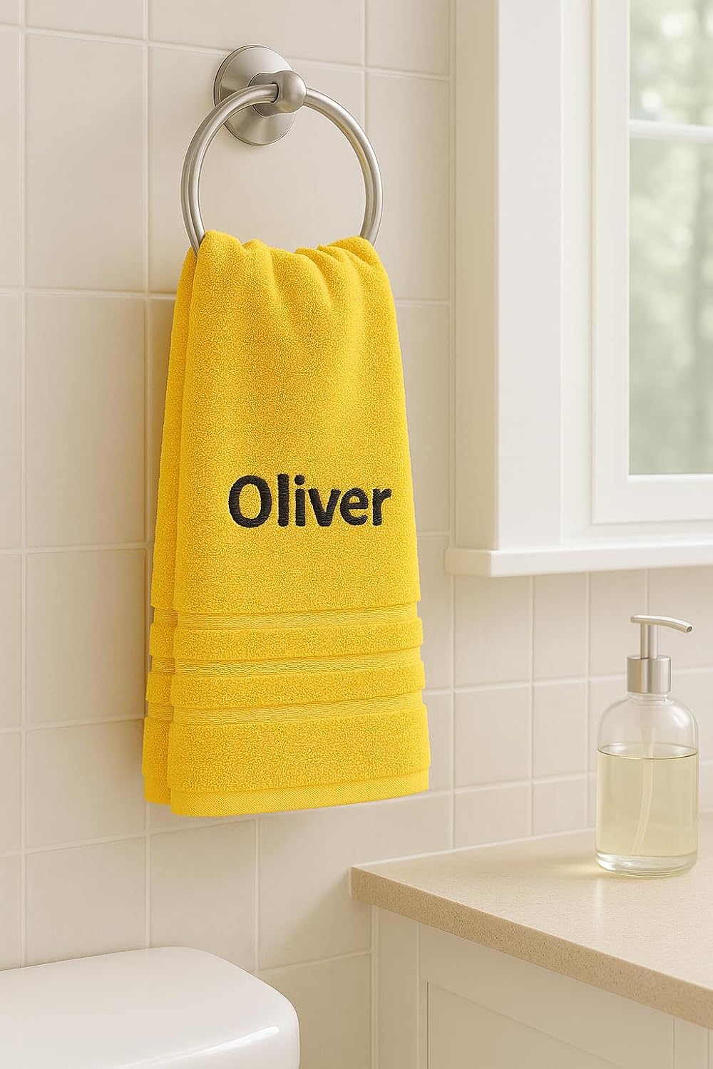 Персонализирани бродирани качествени кърпи - перфектен подарък с личен щрих. Как да поръчате: изберете цвят, кликнете върху „персонализирай сега“. Изберете цвят на името и въведете желаното име с до 15 букви в полето. Добави в количката. Висококачествена бродерия - изглежда страхотно и е завинаги. Материя: мек 100% памук. Размер: пакетът съдържа две кърпи: хавлия за баня (140 x 70 см) и хавлия за ръце (50 x 100 см)