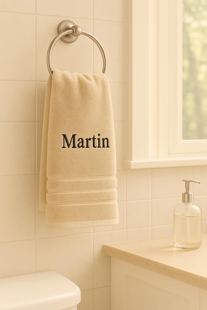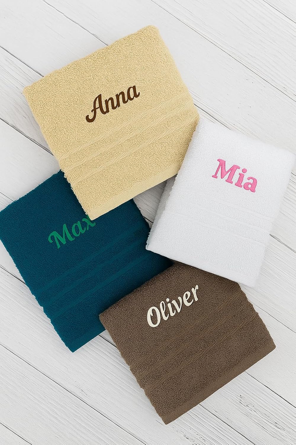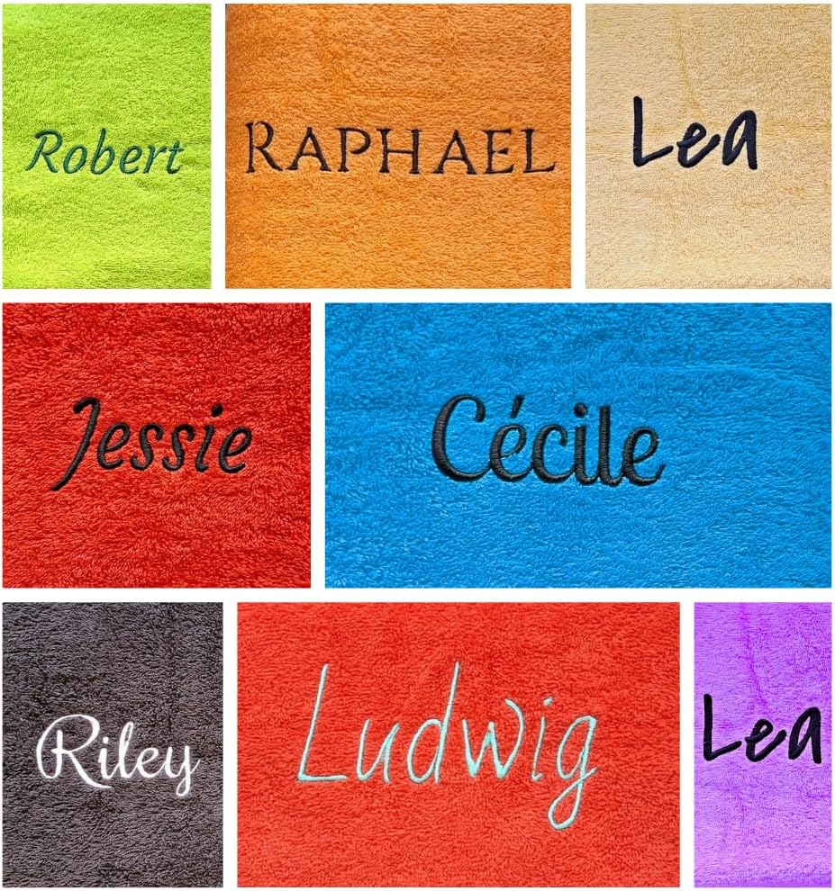 Персонализирани бродирани качествени кърпи - перфектен подарък с личен щрих. Как да поръчате: изберете цвят, кликнете върху „персонализирай сега“. Изберете цвят на името и въведете желаното име с до 15 букви в полето. Добави в количката. Висококачествена бродерия - изглежда страхотно и е завинаги. Материя: мек 100% памук. Размер: пакетът съдържа две кърпи: хавлия за баня (140 x 70 см) и хавлия за ръце (50 x 100 см)