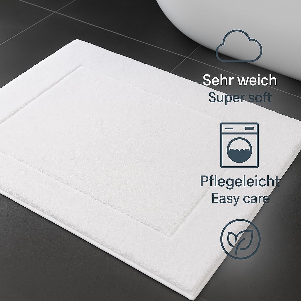 • Високо качество: памучната постелка за баня запазва особено мекия и приятен на допир материал дори след многократно пране. Изключително дебела с 650 г/м² за най-добър комфорт.