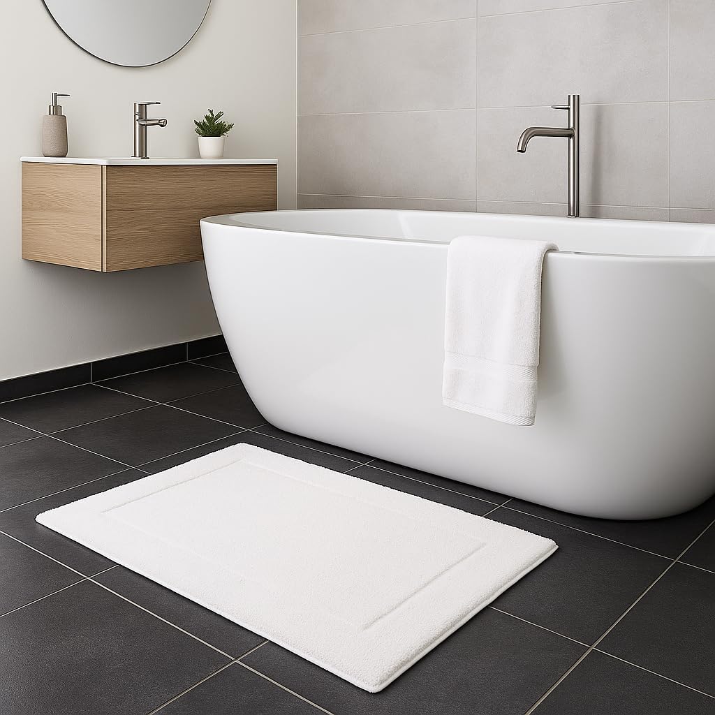 • Вечен дизайн: памучната постелка за баня се предлага в различни цветове и е с семпъл дизайн - така че се вписва във всяка баня. Вечни цветове с висококачествен външен вид