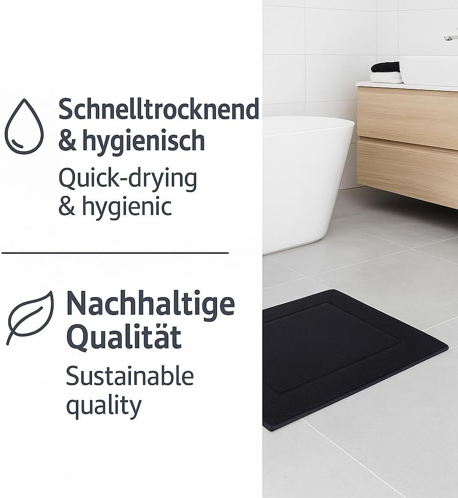• Вечен дизайн: памучната постелка за баня се предлага в различни цветове и е с семпъл дизайн - така че се вписва във всяка баня. Вечни цветове с висококачествен външен вид