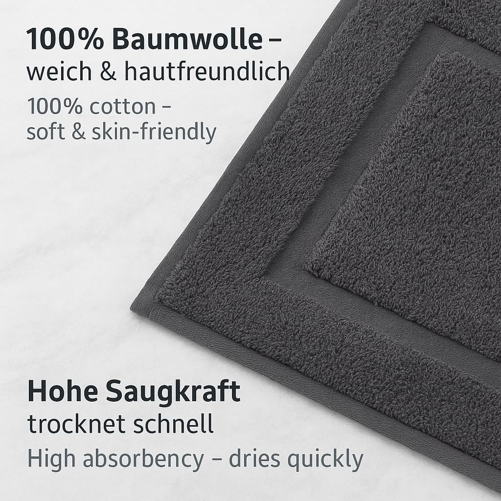 • Вечен дизайн: памучната постелка за баня се предлага в различни цветове и е с семпъл дизайн - така че се вписва във всяка баня. Вечни цветове с висококачествен външен вид