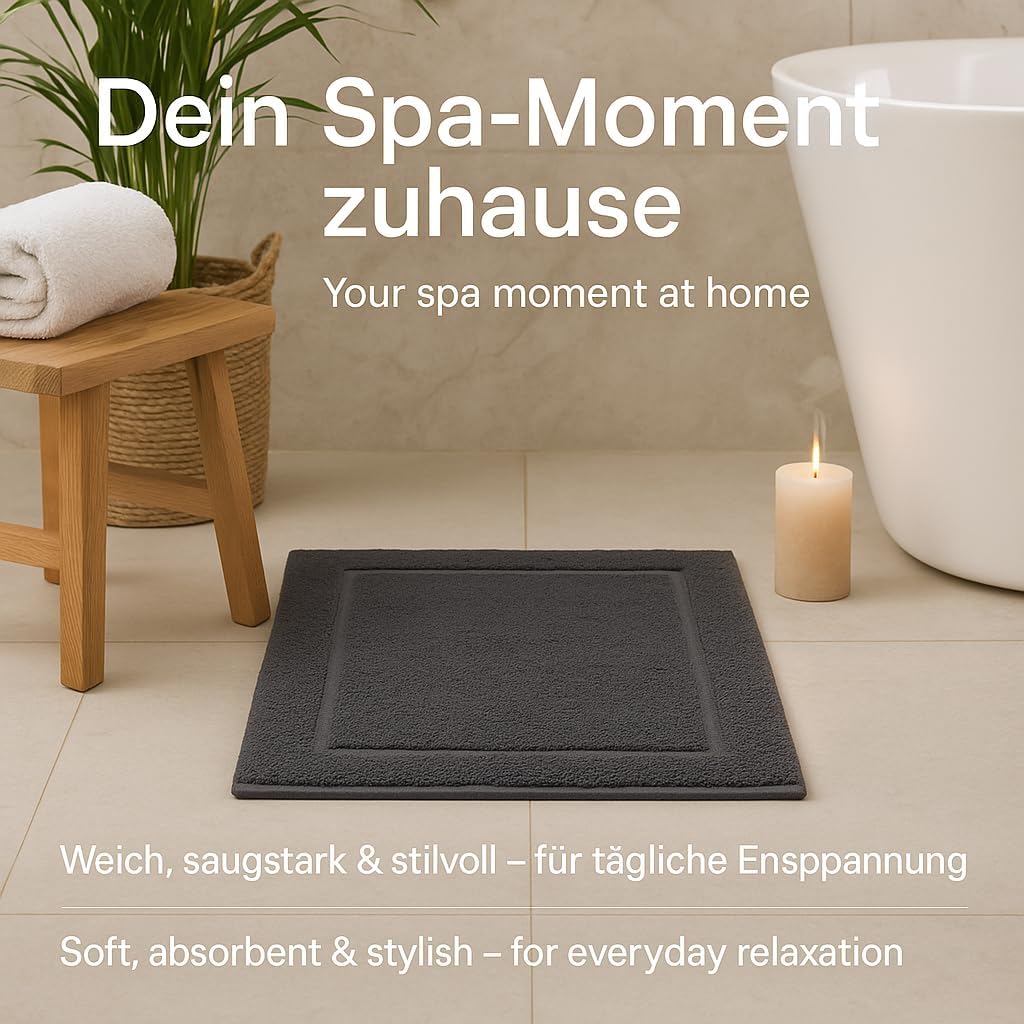 • Високо качество: памучната постелка за баня запазва особено мекия и приятен на допир материал дори след многократно пране. Изключително дебела с 650 г/м² за най-добър комфорт.
