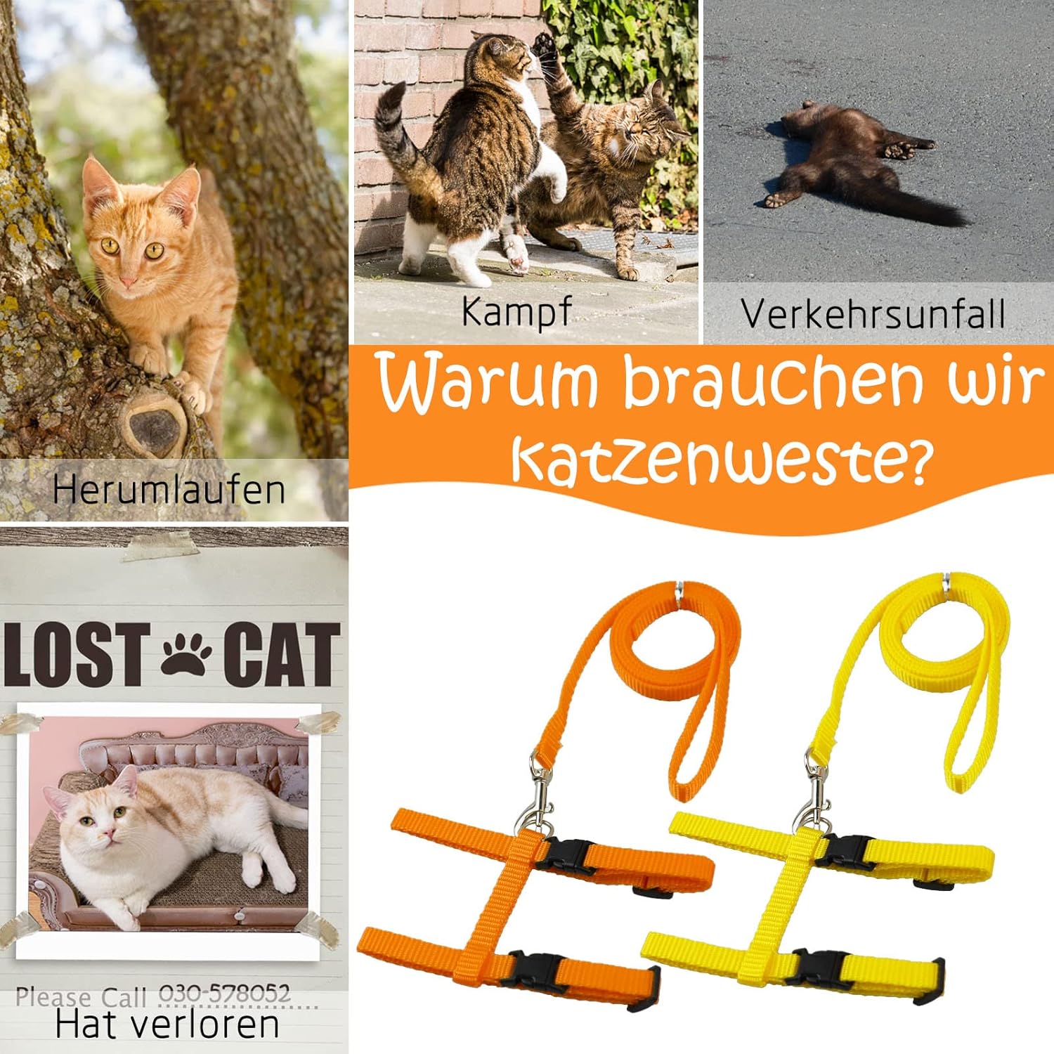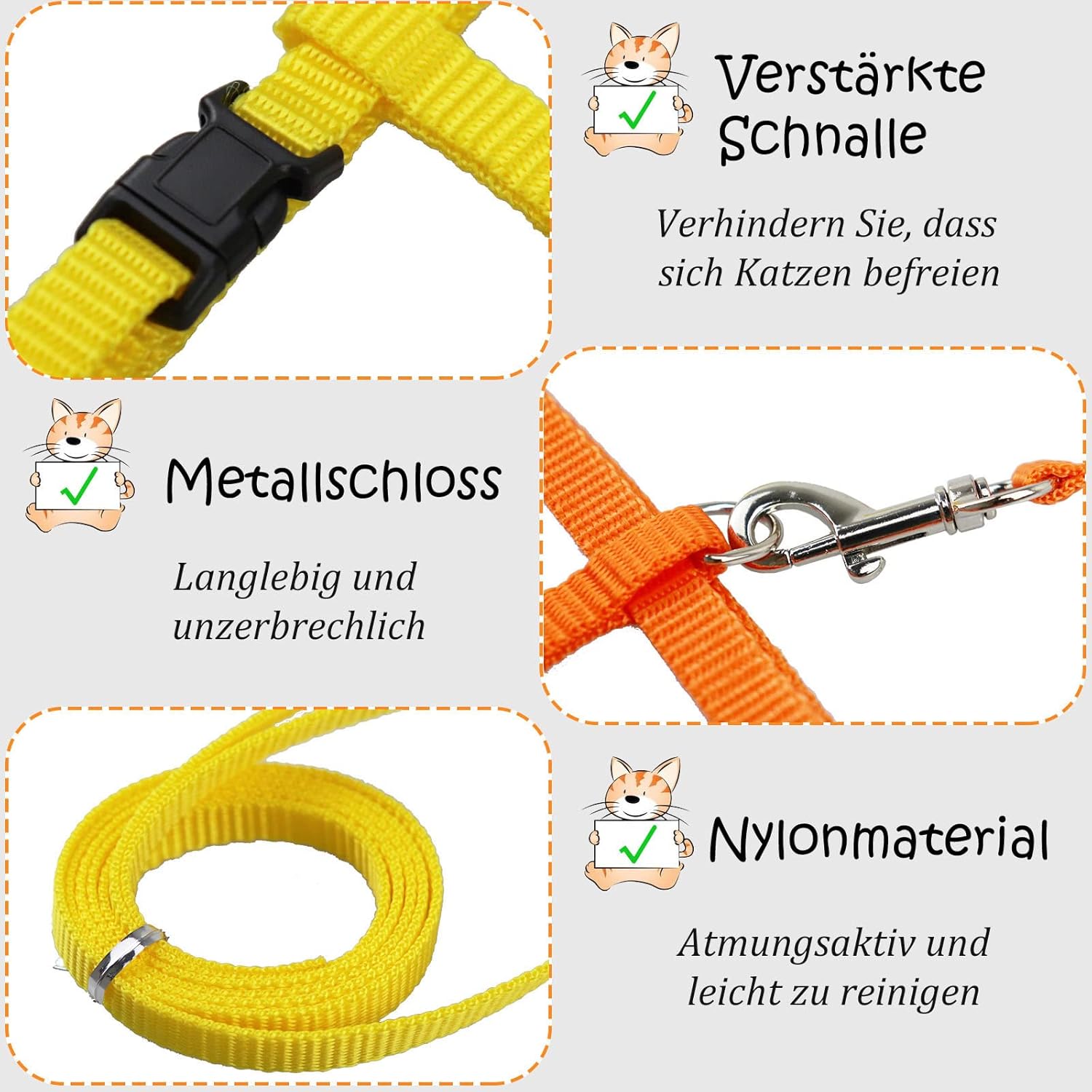 Съдържание на опаковката: Котешка нагръдник с каишка и нашийник x 2