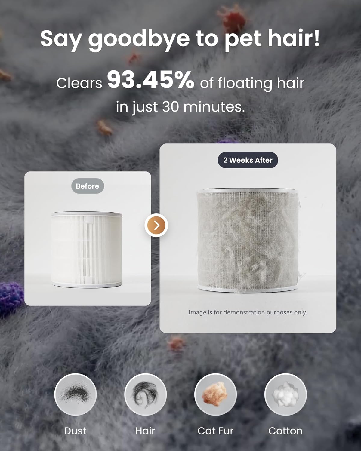 • БЪРЗО ПРЕМАХВАНЕ НА КОЗИНАТА И МИРИЗМИТЕ ОТ ДОМАШНИ ЛЮБИМЦИ Уникалната циркулационна система на пречиствателя на въздух SwitchBot бързо завихря упоритите косми от домашни любимци и ги улавя сигурно през големи решетки и специални филтри, за да предотврати вторично замърсяване. Със специалния активен въглен за домашни любимци, той може ефективно да неутрализира амоняк, сероводород, метилмеркаптан, триметиламин и оцетна киселина.