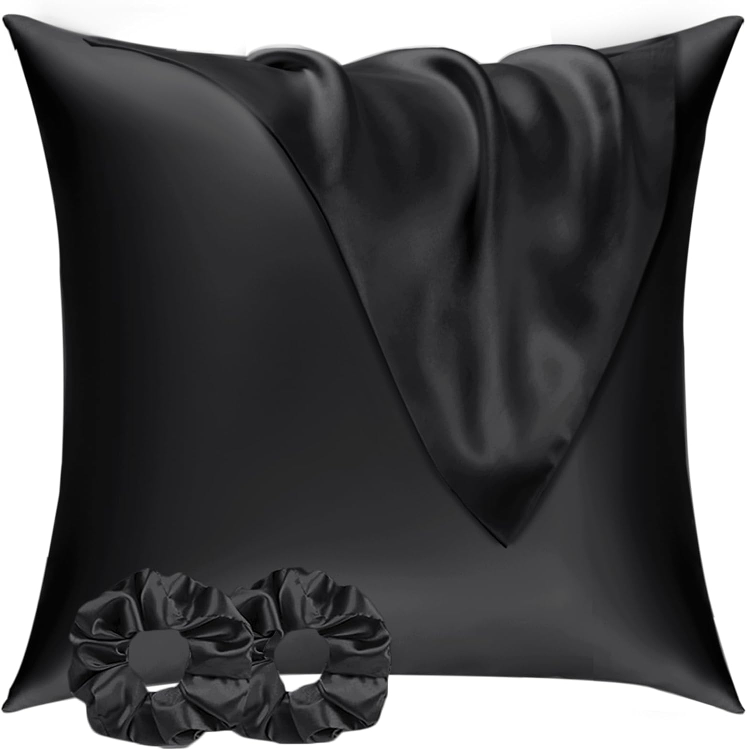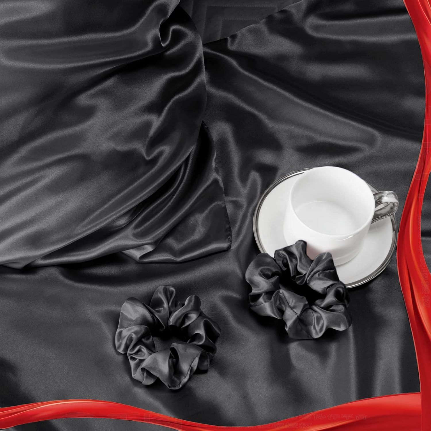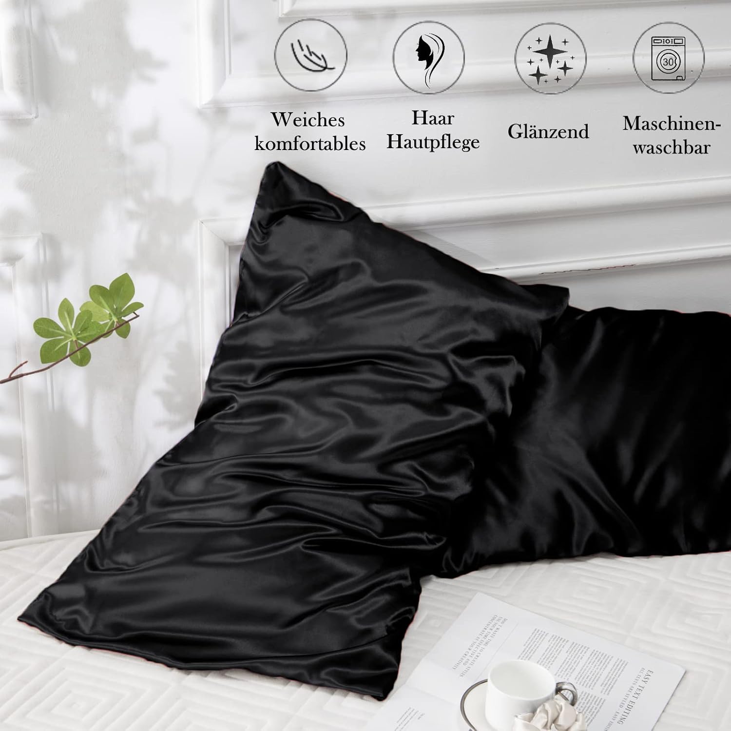Комплект от 2 сатенени калъфки за възглавници Vielit, 40 x 80 см, Черен, Калъфка за възглавница мека като коприна 40 x 80 см, По-добра грижа от копринена калъфка за възглавници, Сатенена калъфка за възглавница за коса и кожа с 2 топчета за коса