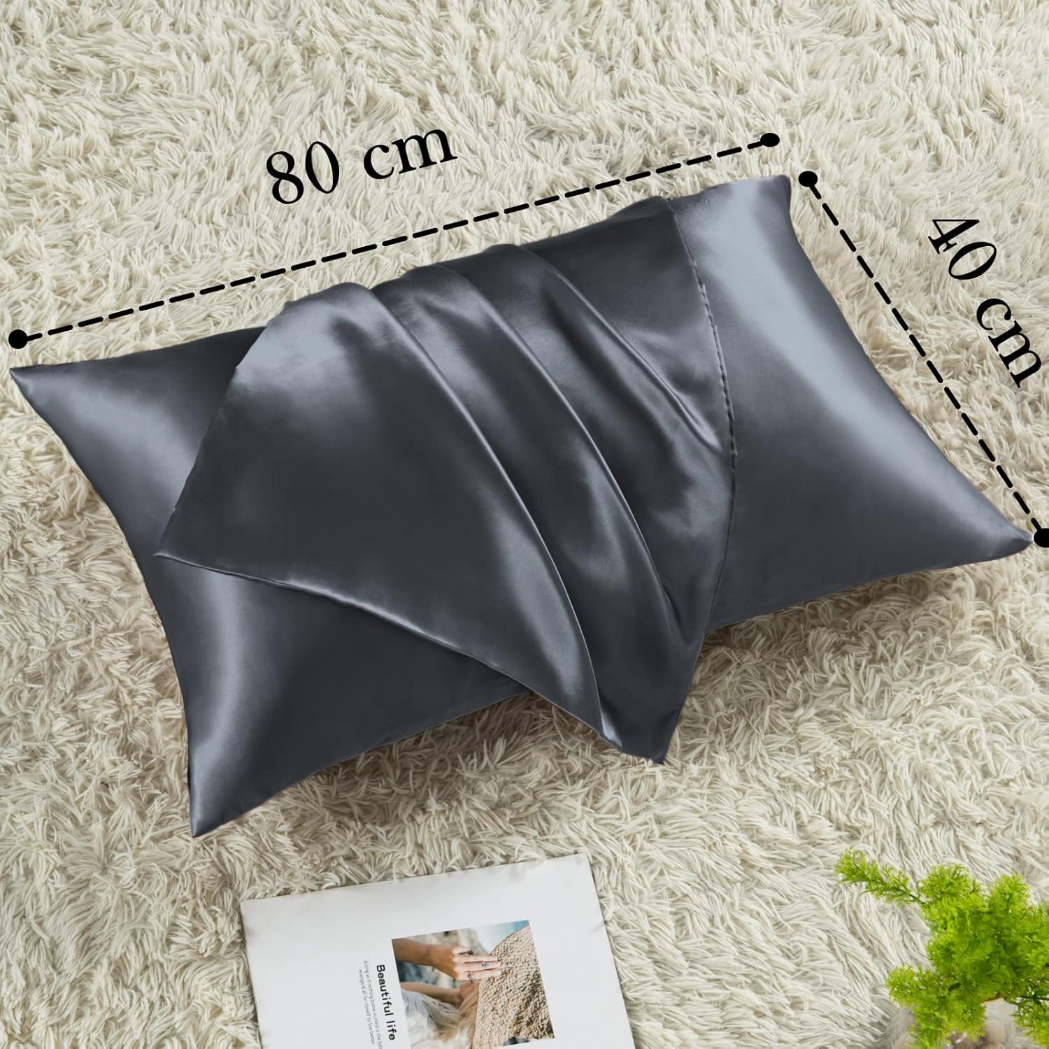 • Разнообразие от цветове и размери: Vielit предлага сатенени калъфки за възглавници в различни размери: 40 x 60 см, 40 x 80 см, 80 x 80 см, 50 x 70 см, 50 x 80 см, 60 x 60 см, 65 x 65 см и 40 x 145 см. 40 x 80 см се отнася до размера на възглавницата, като размерите на калъфката могат да варират с няколко сантиметра, за да паснат по-добре на нея. Разнообразие от цветове: Бяло, черно, сиво, антрацит, бежово, синьо и зелено, всички от които пасват идеално на всеки сезон и превръщат дома ви в модерен и луксозен оазис.