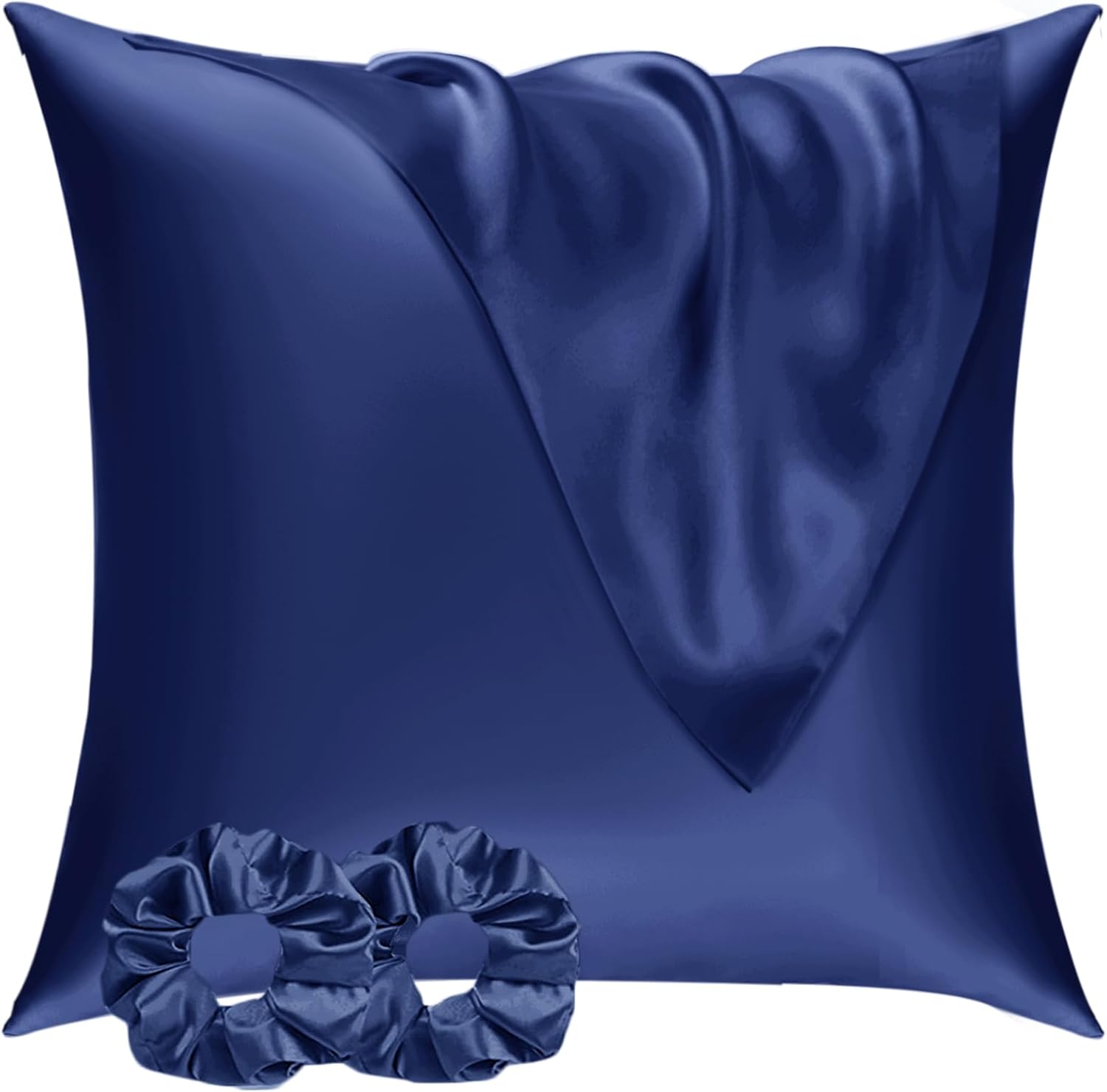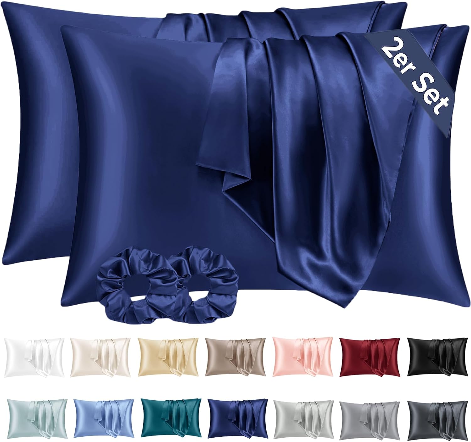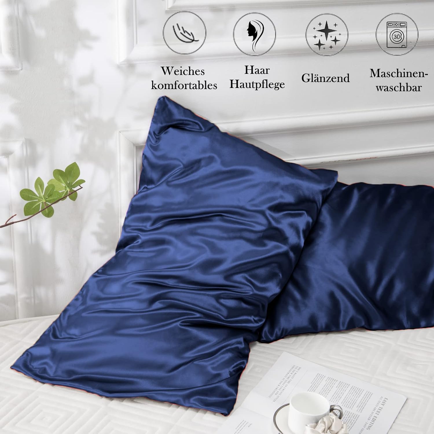 Комплект от 2 сатенени калъфки за възглавници Vielit, 50 x 70 см, тъмносин, мека като коприна калъфка за възглавница, по-добра грижа от копринена калъфка за възглавница, сатенена калъфка за възглавница 50 x 70 см, калъфка за възглавница за коса и кожа с 2 вида коса