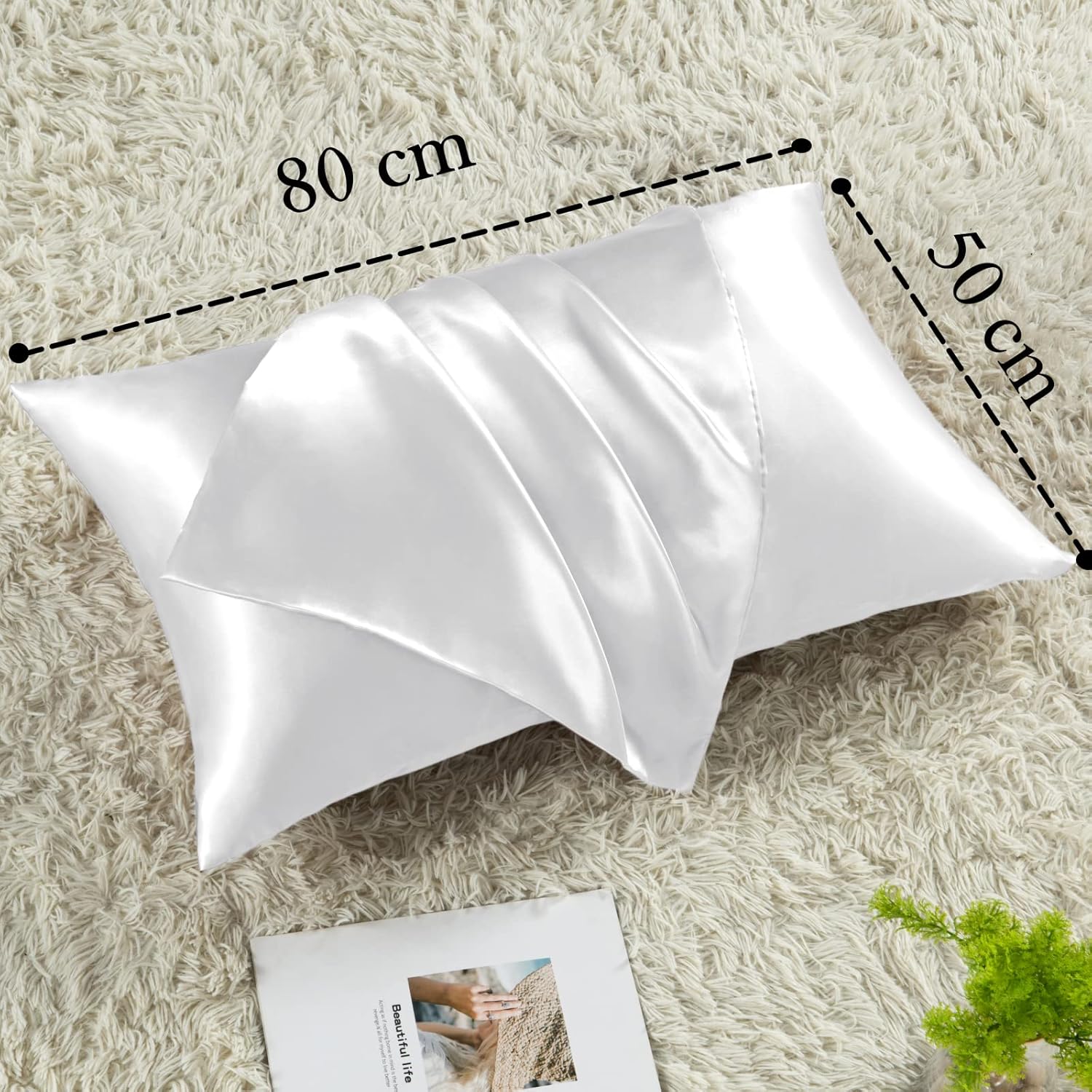 Комплект от 2 сатенени калъфки за възглавници Vielit, 50 x 80 см, мека като коприна калъфка за възглавница, по-добра грижа от копринена калъфка за възглавница, сатенена калъфка за възглавница 50 x 80 см, калъфка за възглавница за коса и кожа с 2 ластичета за коса, бяла