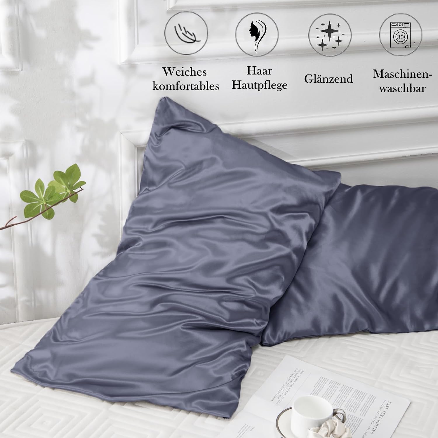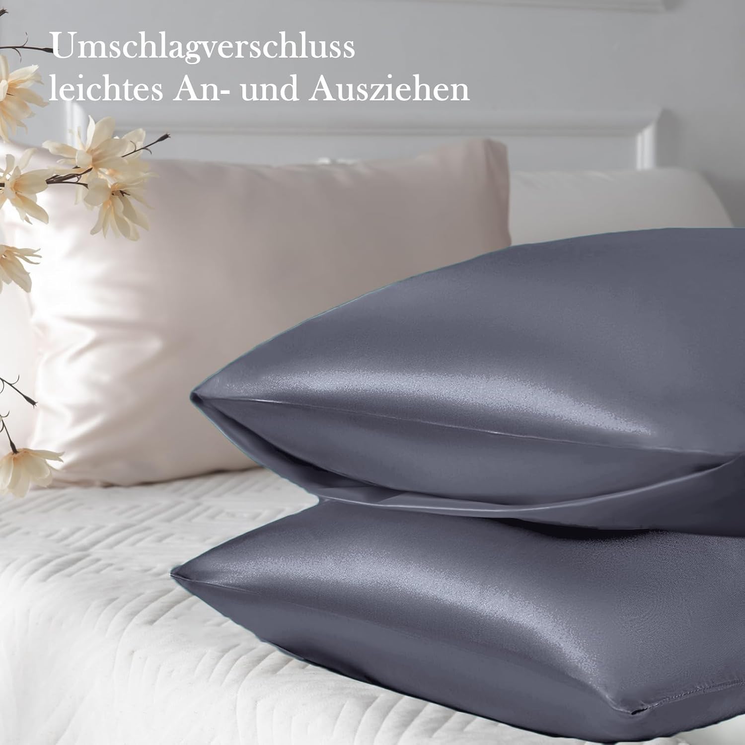 • Закопчаване тип „плик“ и възможност за пране в пералня: Комплект от 2 сатенени калъфки за възглавници (40 x 80 см). Закопчаването тип „плик“ улеснява поставянето и свалянето. Нашите сатенени калъфки за възглавници могат да се перат в пералня без усилие при температура до 30°C и стават още по-меки и пухкави след всяко пране. Наслаждавайте се на свежо и успокояващо изживяване по време на сън всеки ден. Те няма да избледнеят и са по-лесни за поддръжка от копринените калъфки за възглавници.