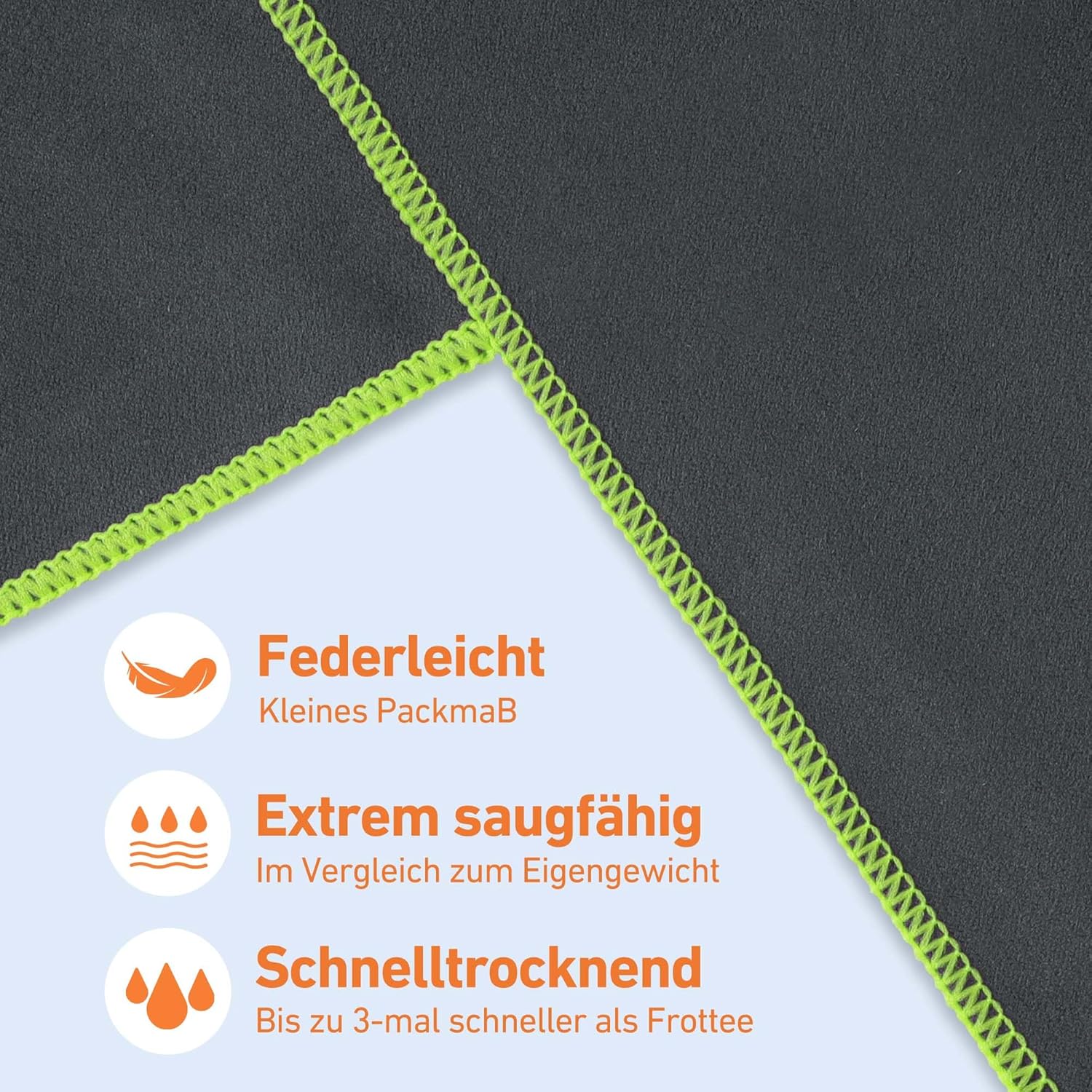 • Комплект от 2 кърпи: ще получите кърпа с размери 180 x 90 см и 100 x 50 см. Този комплект големи микрофибърни кърпи е идеален за всички ваши нужди, независимо дали сте във фитнеса като кърпа за фитнес, за спорт като спортна кърпа за фитнес или като голяма кърпа за плажа. Той предлага перфектната комбинация от размер и функционалност.