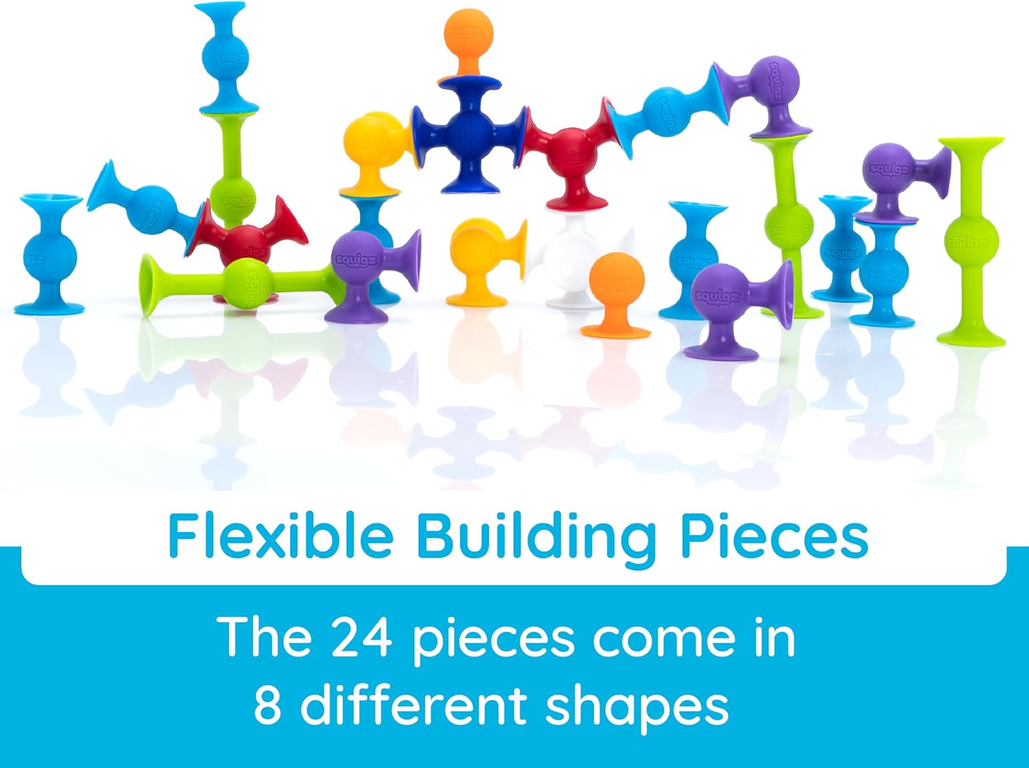 Комплект от 22 части Fat Brain Squigz Starter, играчка за деца в предучилищна възраст, комплект играчки с всмукване, играчка за сортиране и подреждане, играчка за вана за деца в предучилищна възраст, иновативна играчка за деца над 3 години.