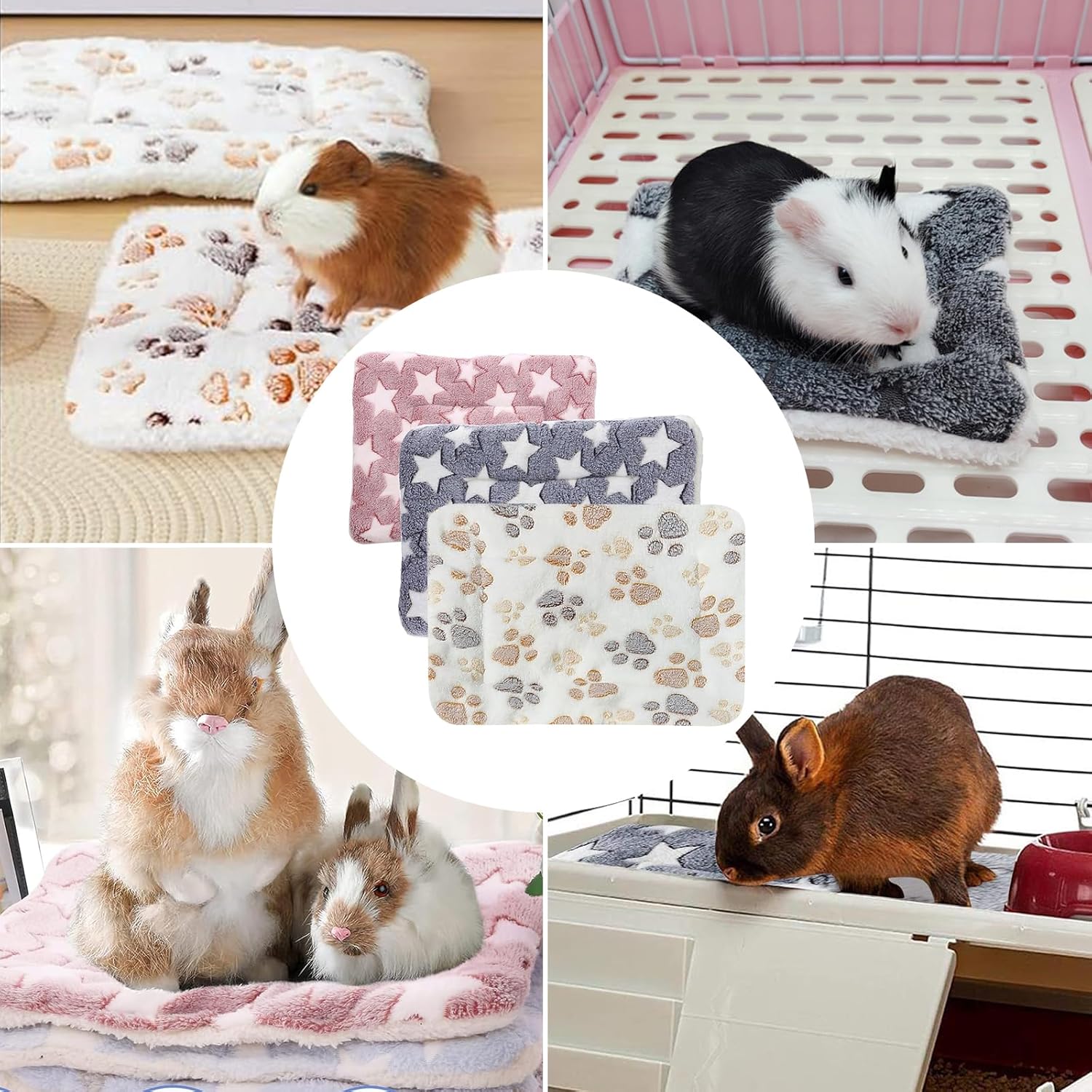 Комплект от 3 легла за зайци, топло пухкаво плюшено легло за малки животни, подходящо за зайци.
