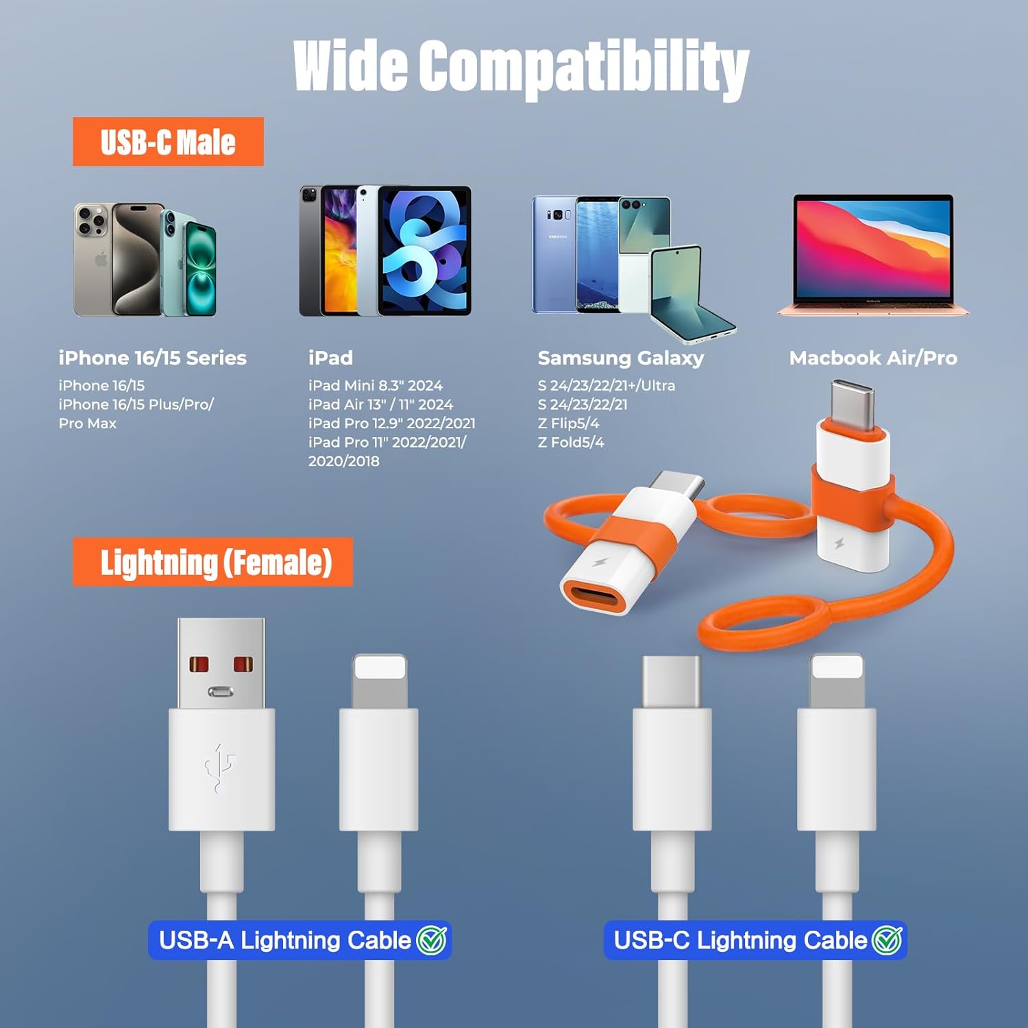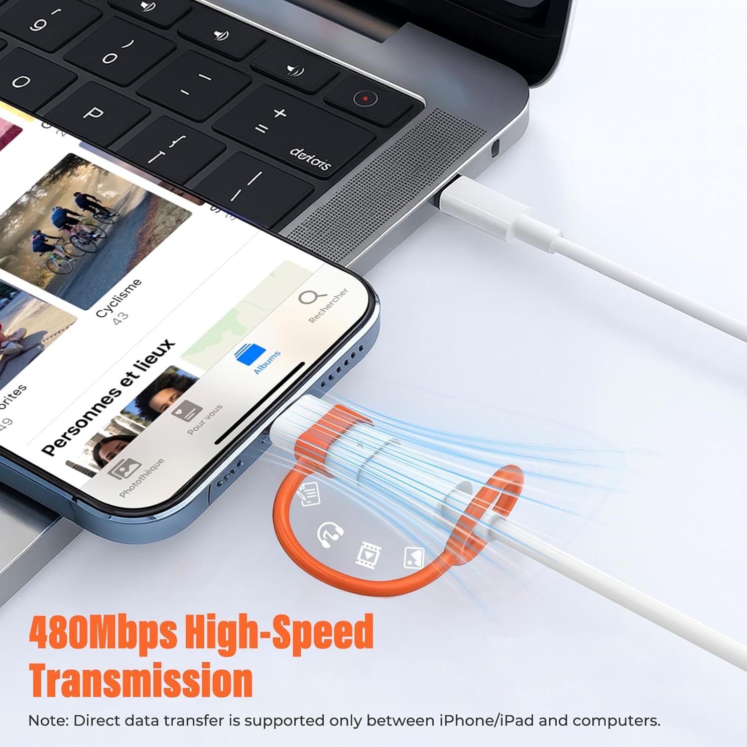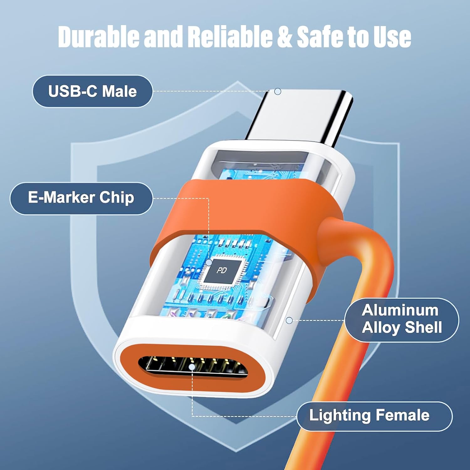 Комплект от 3 Lightning към USB C адаптера, бързо зареждане 36 W, 480 Mbps трансфер на данни към компютър, здрав и издръжлив, Lightning USB C адаптер за iPhone 16 15 Pro/MAX Samsung Galaxy S24S23, не е за аудио/OTG