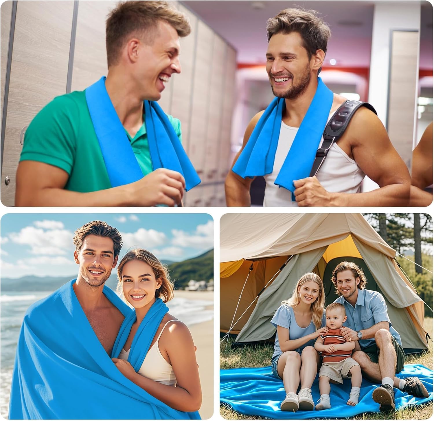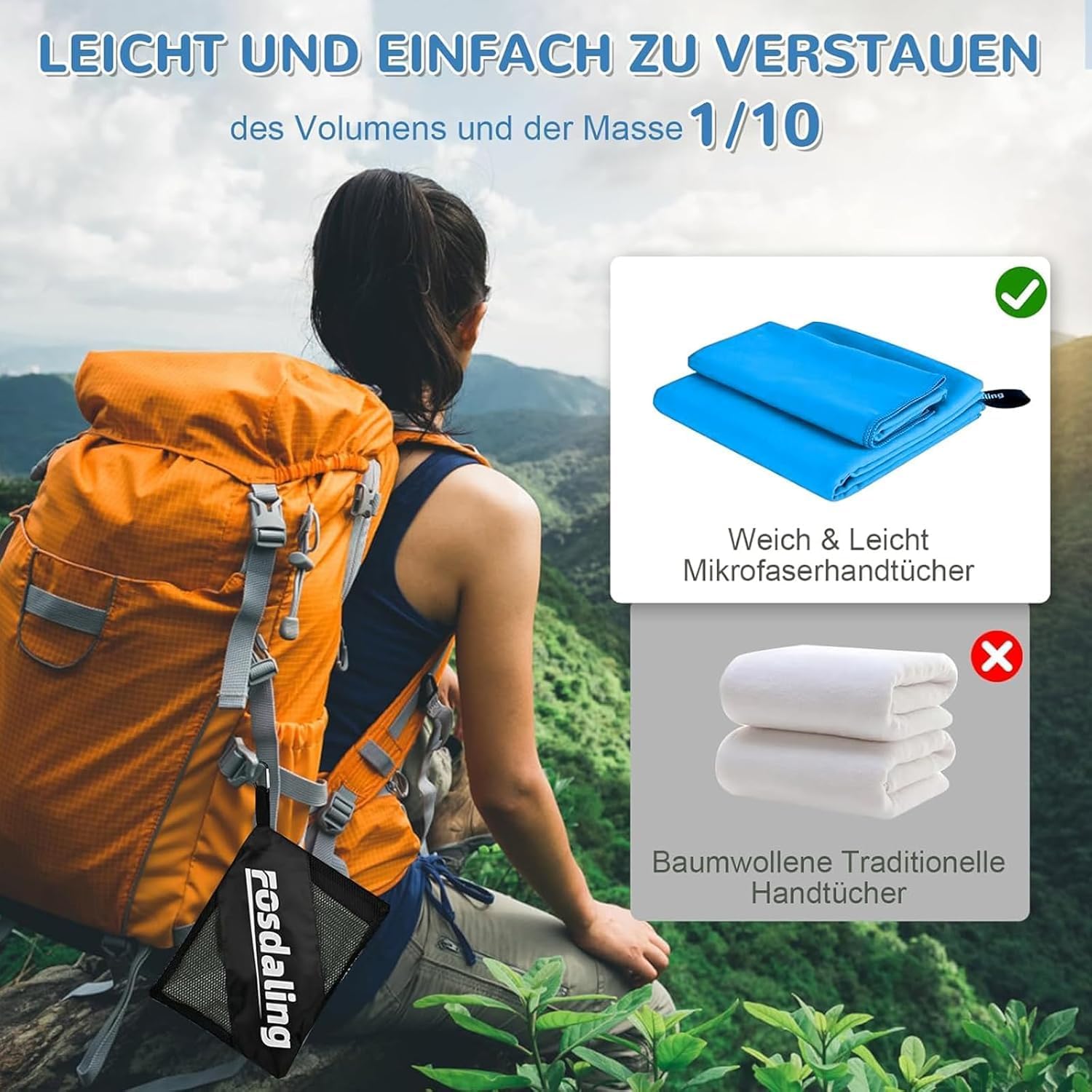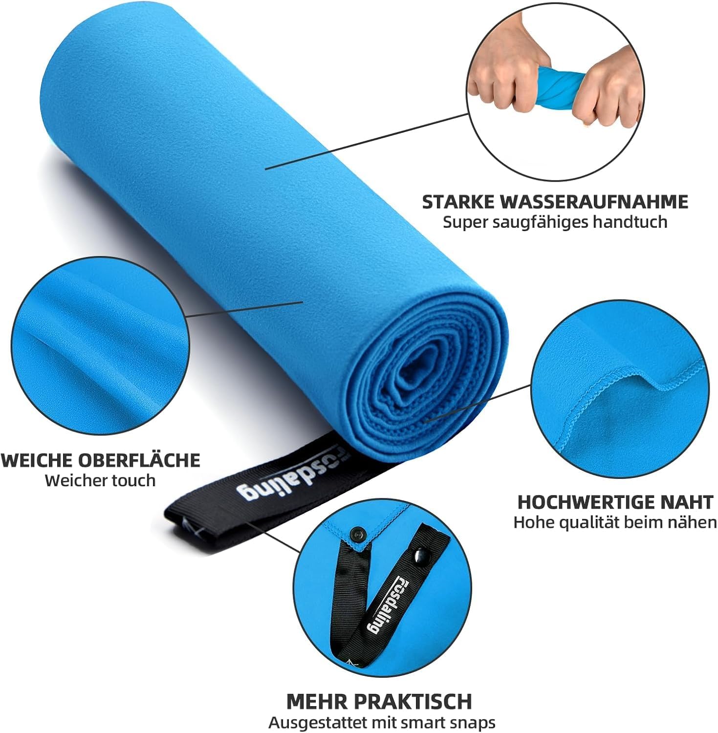 • Многофункционални: голяма кърпа 200 x 100 см и 2 малки кърпи 80 x 40 см, включително аксесоари: преносима чанта за съхранение. Микрофибърни кърпи, подходящи за различни поводи като пътуване, дейности на открито, къмпинг, фитнес зала, плуване, сауна, спорт, фитнес и йога.