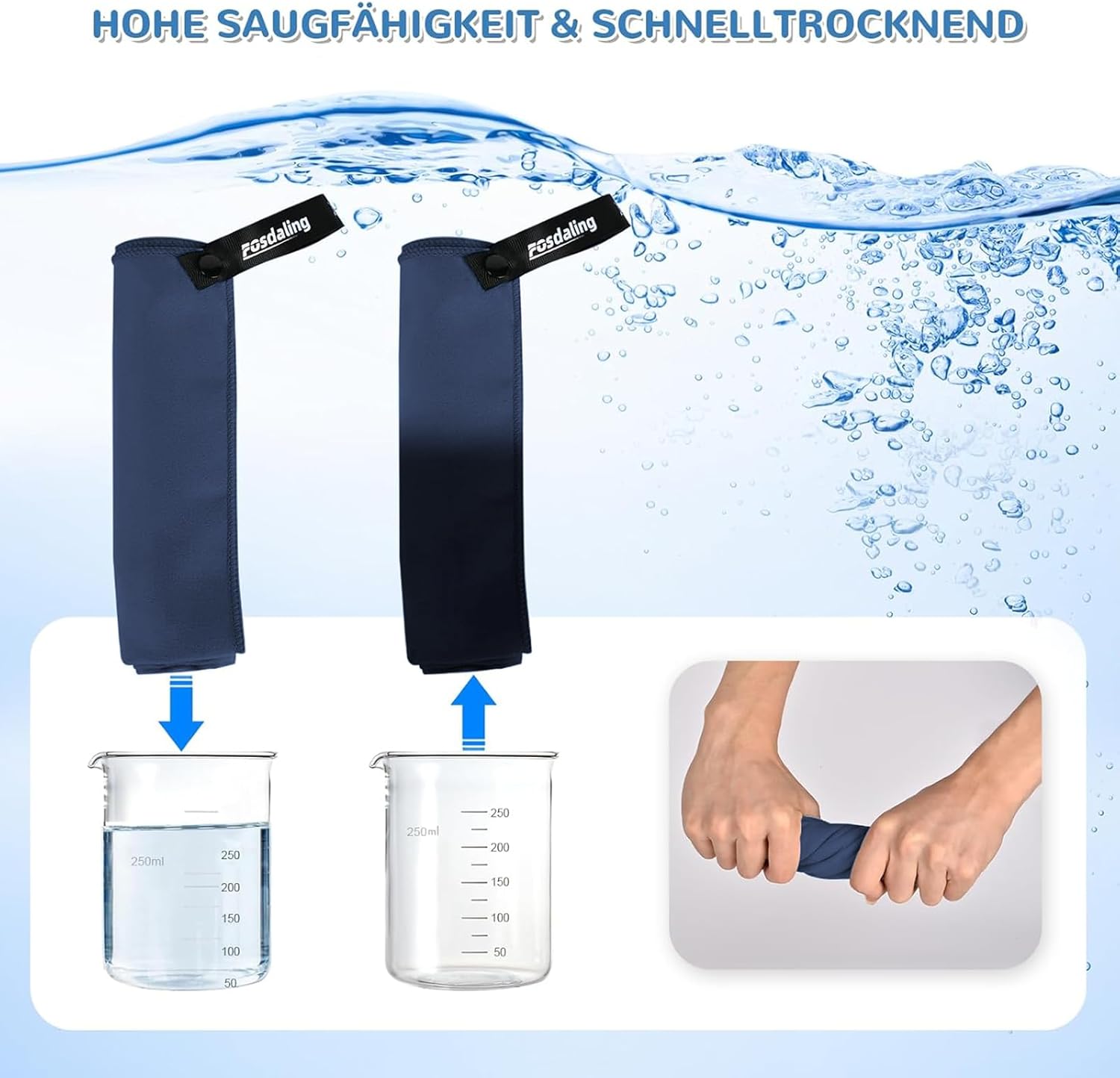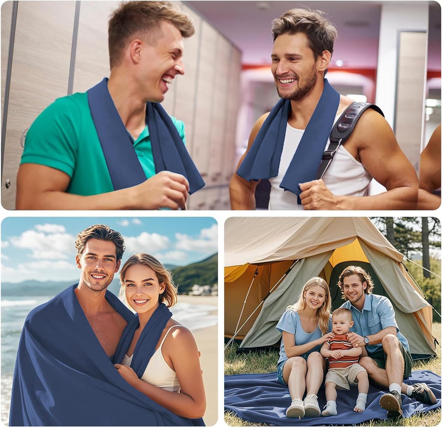 • Многофункционални: голяма кърпа 200 x 100 см и 2 малки кърпи 80 x 40 см, включително аксесоари: преносима чанта за съхранение. Микрофибърни кърпи, подходящи за различни поводи като пътуване, дейности на открито, къмпинг, фитнес зала, плуване, сауна, спорт, фитнес и йога.