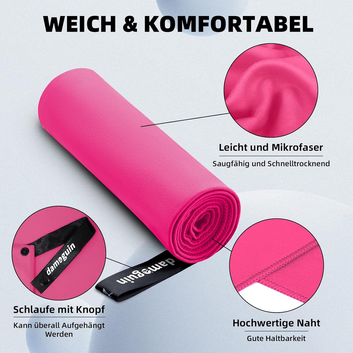 • Комплект от 3 кърпи за ръце: Бързосъхнещата фитнес кърпа Damoguin е изработена от висококачествени микрофибри и съдържа една голяма кърпа (180 x 80 см) и две по-малки кърпи (80 x 40 см) и торбичка. Забележка: Моля, изперете микрофибърната кърпа отделно за първи път, за да избегнете обезцветяване.