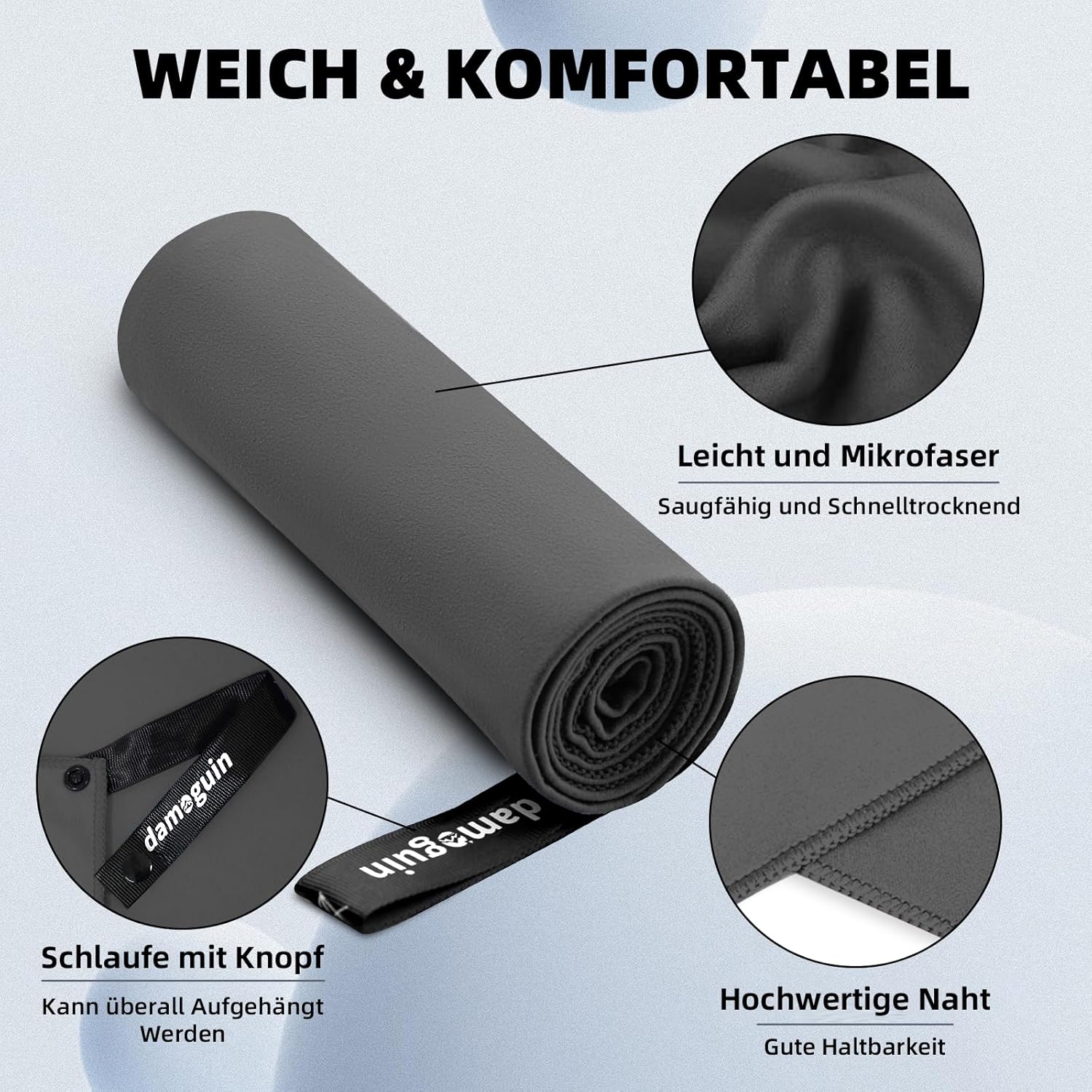 • Комплект от 3 кърпи за ръце: Бързосъхнещата фитнес кърпа Damoguin е изработена от висококачествени микрофибри и съдържа една голяма кърпа (180 x 80 см) и две по-малки кърпи (80 x 40 см) и торбичка. Забележка: Моля, изперете микрофибърната кърпа отделно за първи път, за да избегнете обезцветяване.
