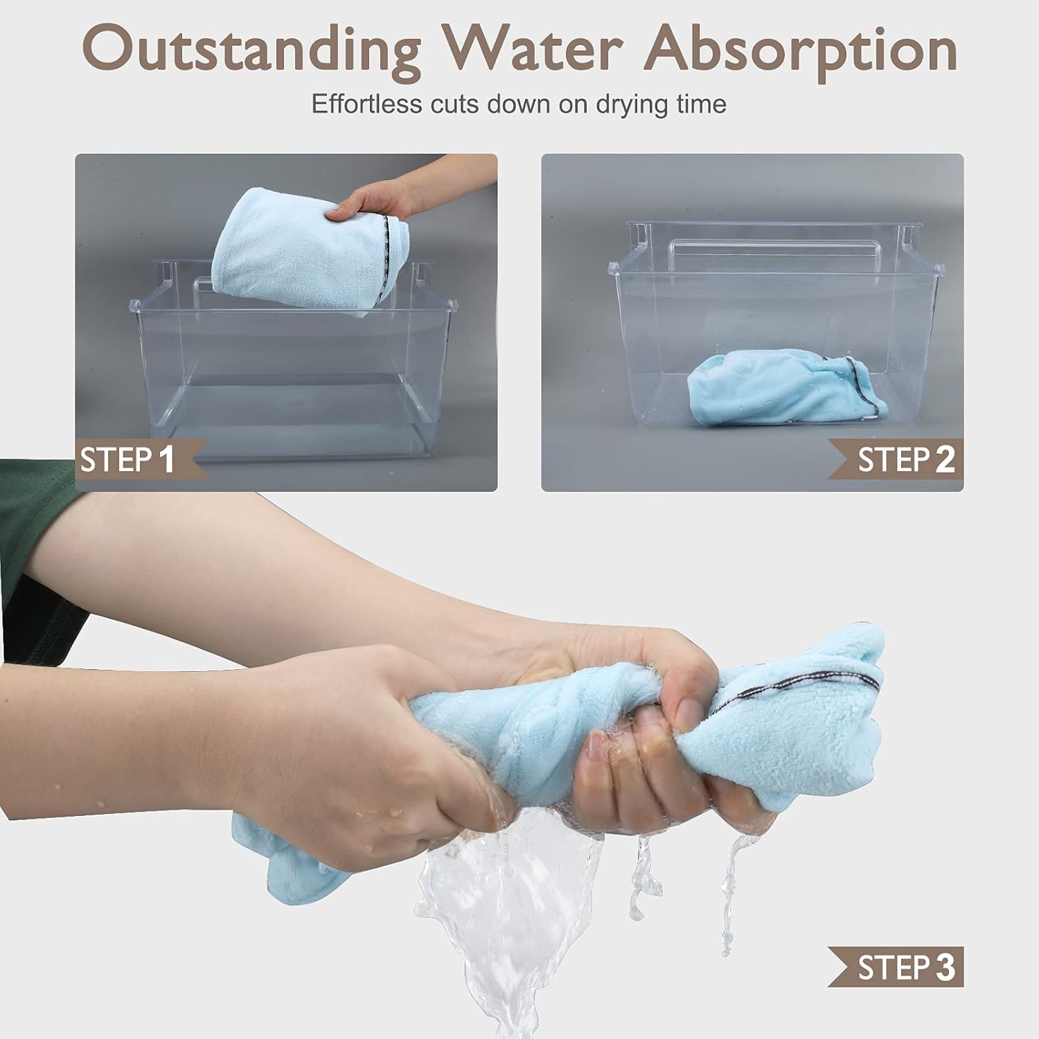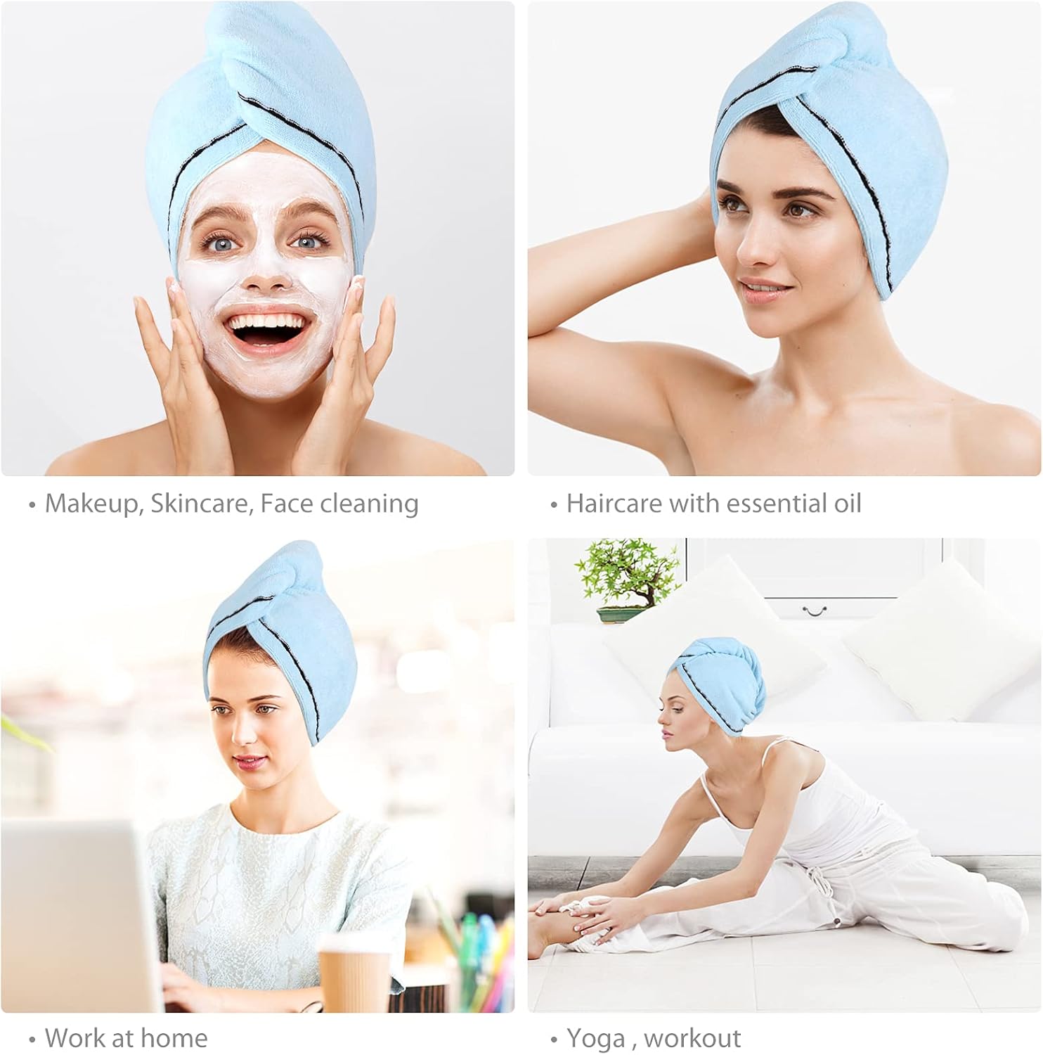 • Спестете много време - докато се грижите за кожата си, едновременно подсушавайте и косата. Вратът ви остава напълно сух, а водата остава в кърпата. Микрофибърните кърпи са идеални за ежедневна употреба у дома, във фитнеса и при пътуване, а също така са чудесни помощници за процедури за лице, къпане, нанасяне на грим и измиване на лице. Не е нужно да се притеснявате, че косата ви ще се изцапа.