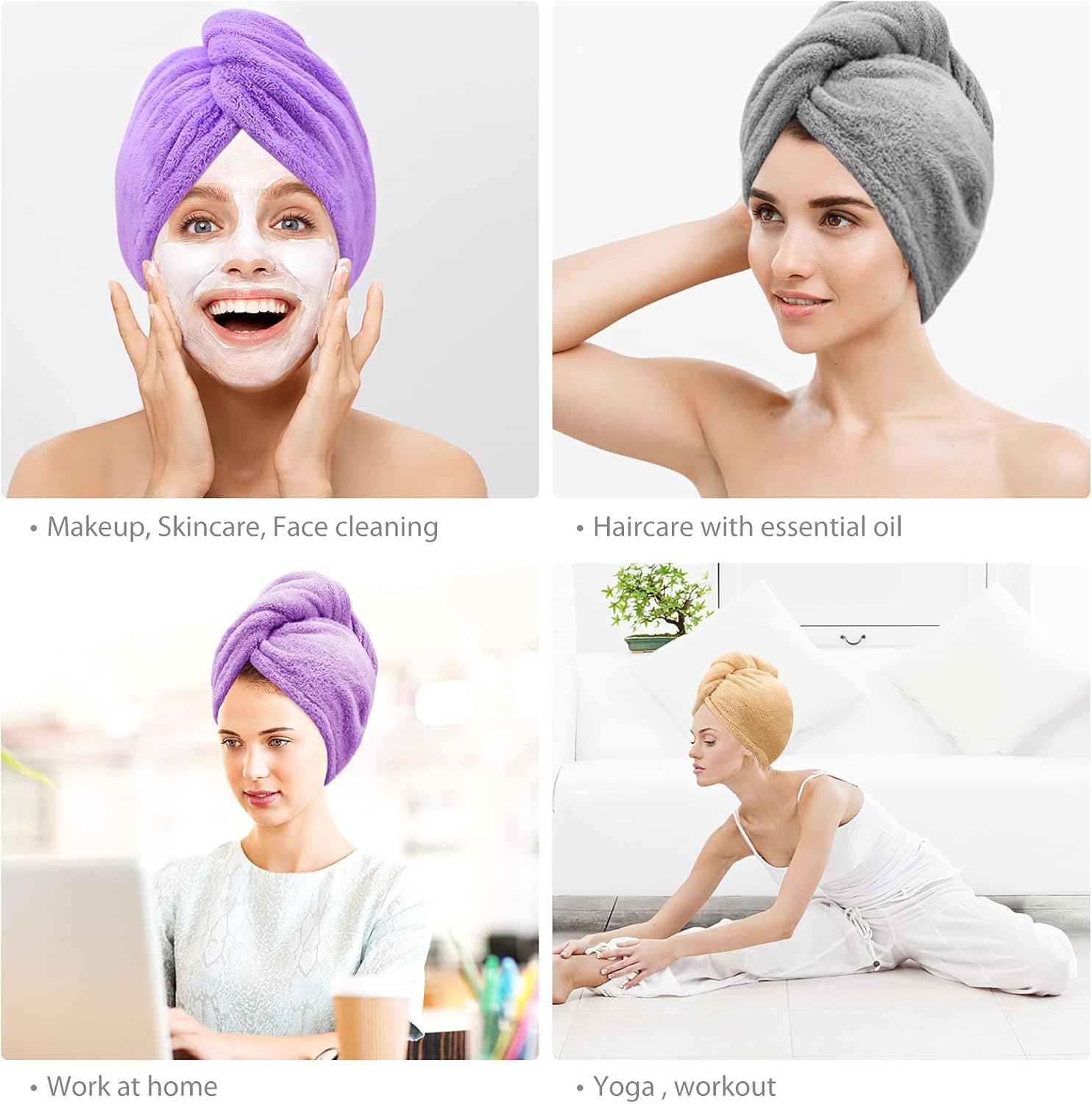 • Спестете много време - докато се грижите за кожата си, едновременно подсушавайте и косата. Вратът ви остава напълно сух, а водата остава в кърпата. Микрофибърните кърпи са идеални за ежедневна употреба у дома, във фитнеса и при пътуване, а също така са чудесни помощници за процедури за лице, къпане, нанасяне на грим и измиване на лице. Не е нужно да се притеснявате, че косата ви ще се изцапа.