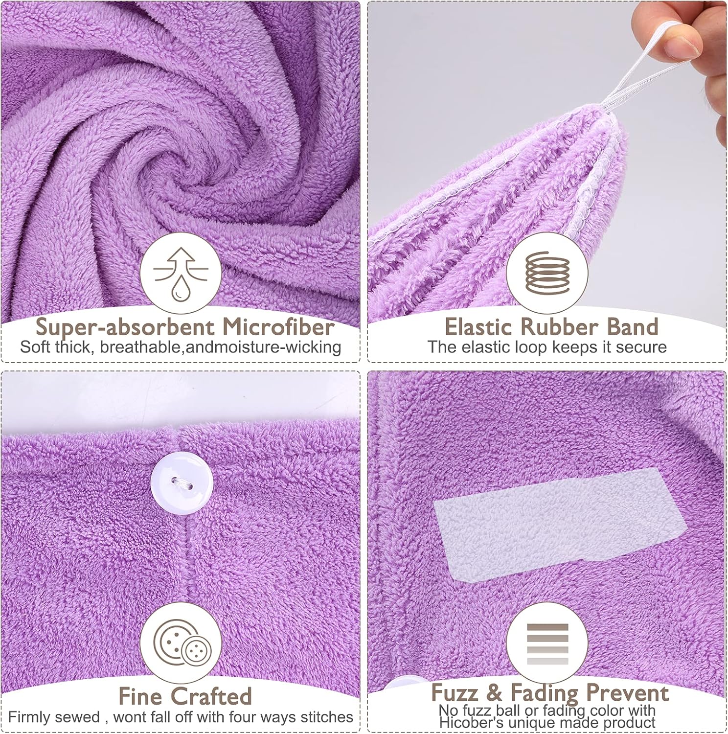 • БЕЗ ПЪЛЗАНЕ И ПАДЕНЕ - Копче и примка на гърба осигуряват здраво прилягане. Лесна за употреба. Решете проблемите си с кърпата/тюрбана за сушене на коса. Увийте косата си и оставете магията ѝ да действа, докато правите други неща след душ. Подходяща за всички типове коса и дължини.