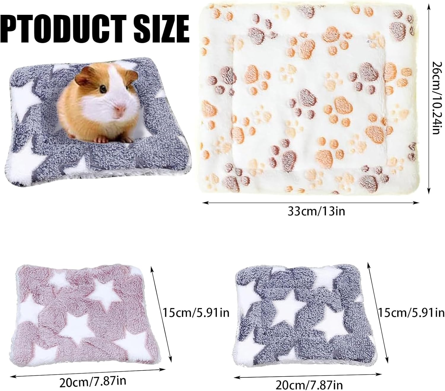 ZYEKIU 3-частично плюшено легло за малки животни, топло пухкаво плюшено легло за малки животни, аксесоари за морски свинчета, килим за гризачи, за зайци, чинчили