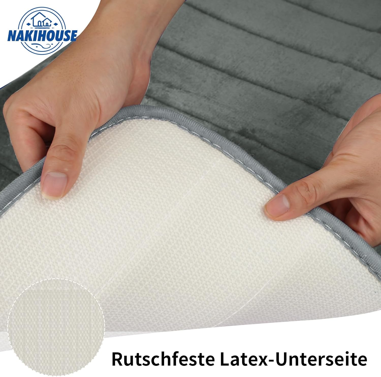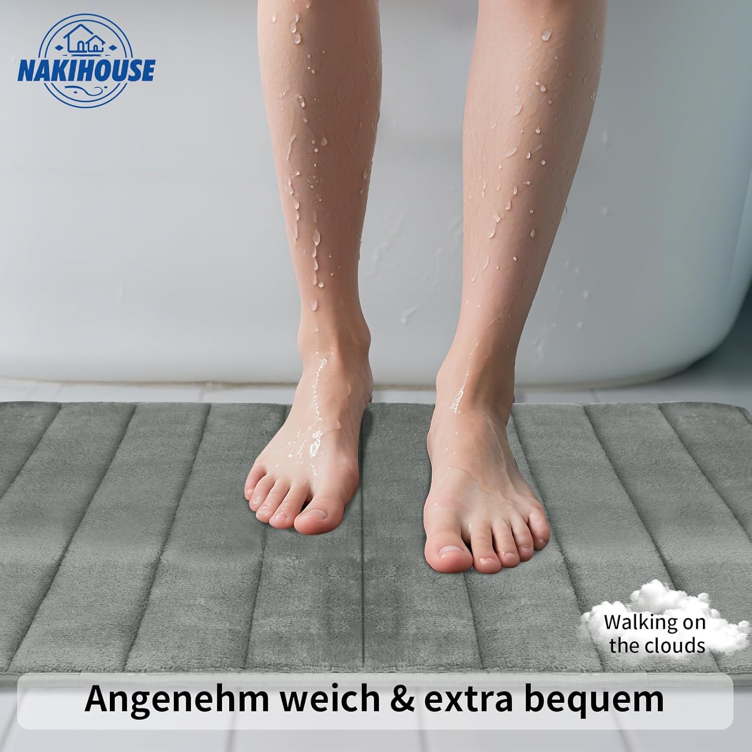• Комфорт от висококачествена мемори пяна: изработени от мека микрофибърна материя с 40D мемори пяна - тези постелки за баня предлагат усещане за фин пясъчен плаж. Изключително дебелата подплата облекчава уморените крака и осигурява луксозен комфорт, който конвенционалните постелки за баня не могат да постигнат.