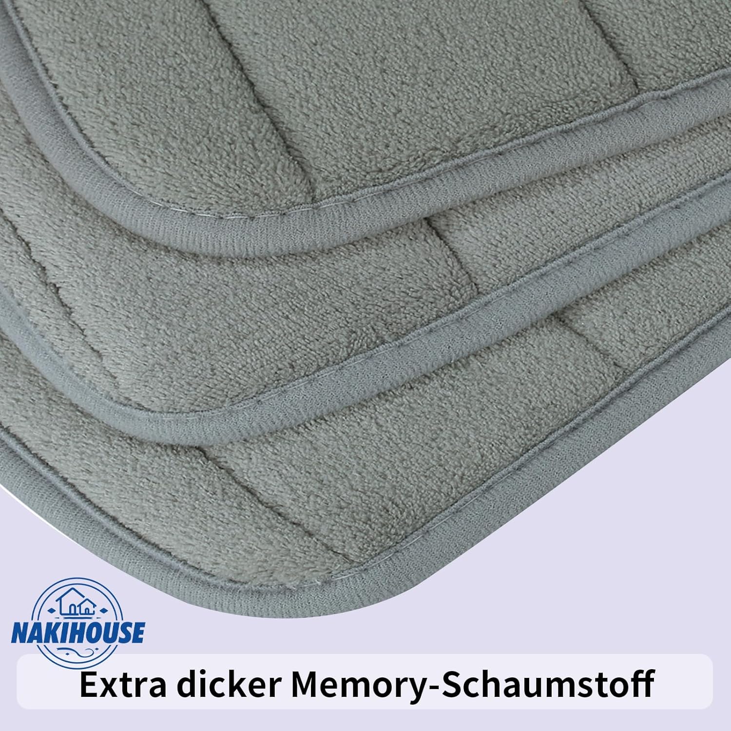 Комплект от 3 постелки за баня от мемори пяна, неплъзгащи се и абсорбиращи, перещи се, меки и бързосъхнещи, килим за баня за душ, тоалетна и вана, светлосив