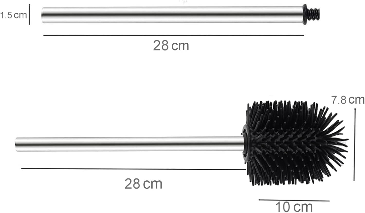 Глава на четката: приблизително 7,5 см диаметър, височина: 10 см. Тоалетна четка с дръжка: приблизително 36,5 см. С лъскав материал от неръждаема стомана. Лесна за почистване и има отлични резултати от почистването. Много удобна за употреба. Международните продукти имат отделни условия, продават се от чужбина и може да се различават от местните продукти, включително корекции, възрастови ограничения и продукти, етикетиране или инструкции. Четка за баня Valchen 2 броя тоалетна четка от неръждаема стомана 7,5 x 35 x 7,5 см черна.